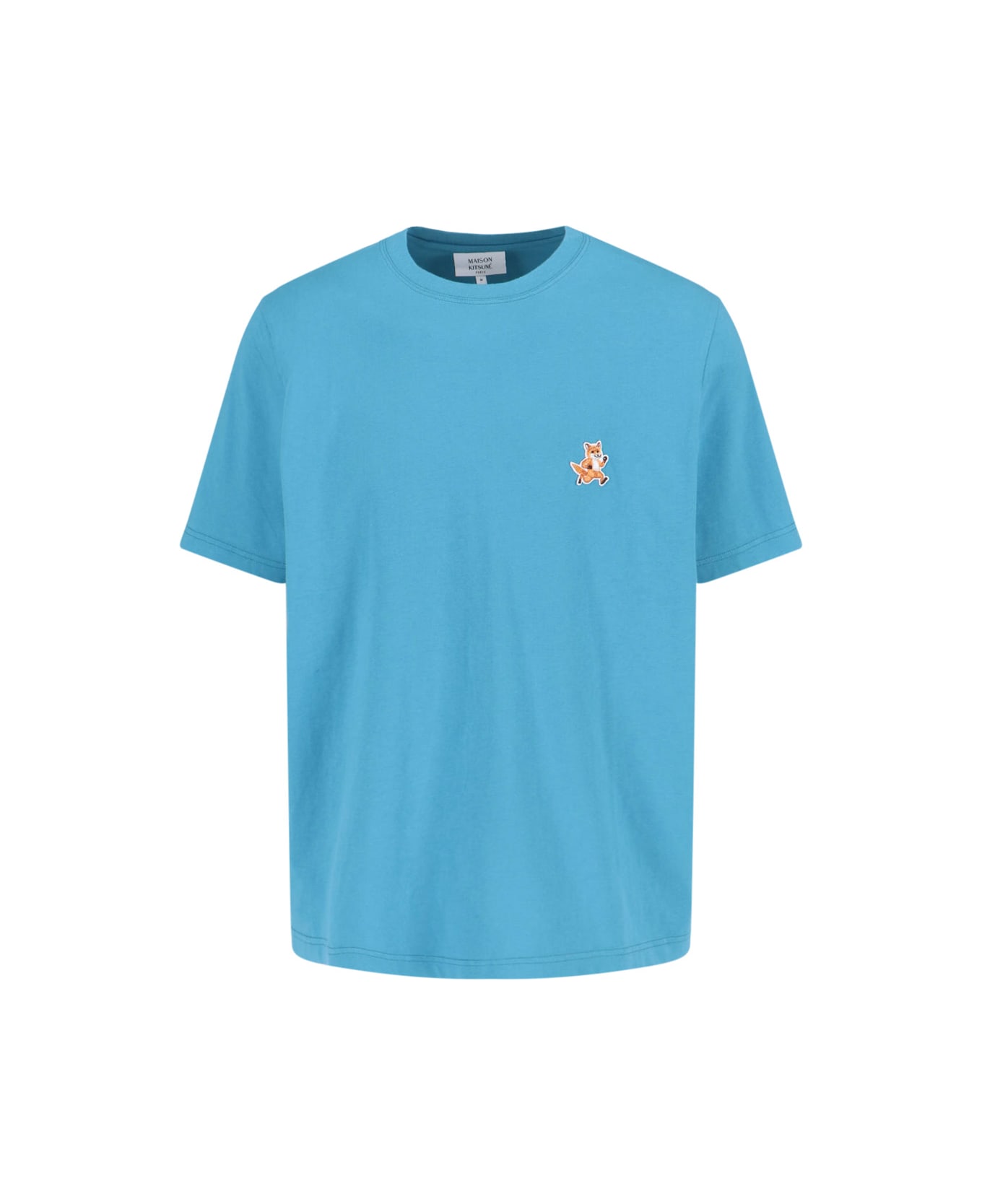 Maison Kitsuné 'Speedy Fox' T-shirt in light blue cotton jersey with crew neck, short sleeves, multicolor logo patch on the chest, straight hem.