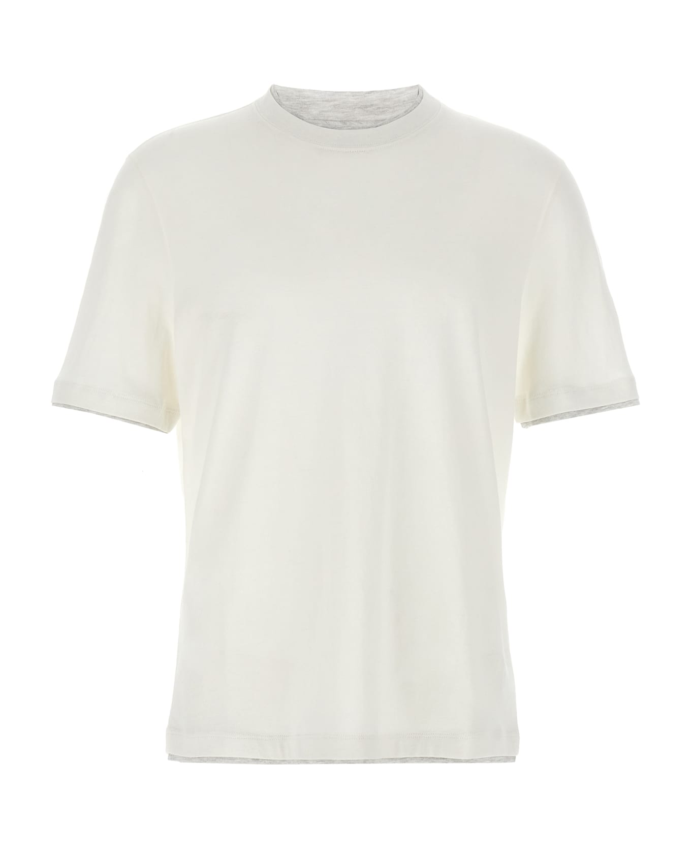 T-shirt in linen and cotton blend with contrasting Faux-Layering, crewneck, and short sleeves. Composition: 57% linen, 43% cotton