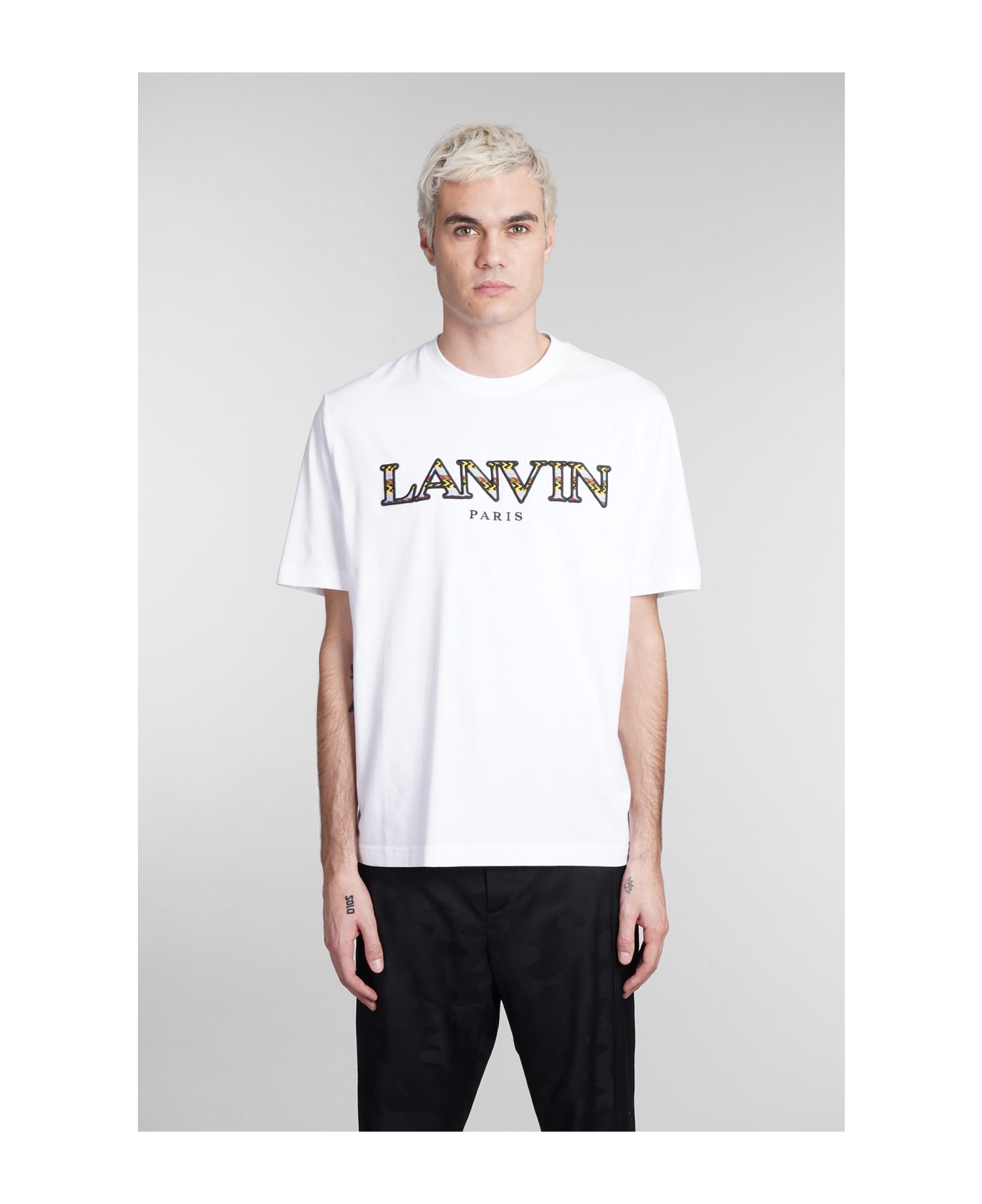 T-Shirt in white cotton, round neck, short sleeves, embossed front logo, embroidered logo back, straight hem, 100% cotton, Model is 1. 83 and wears size M