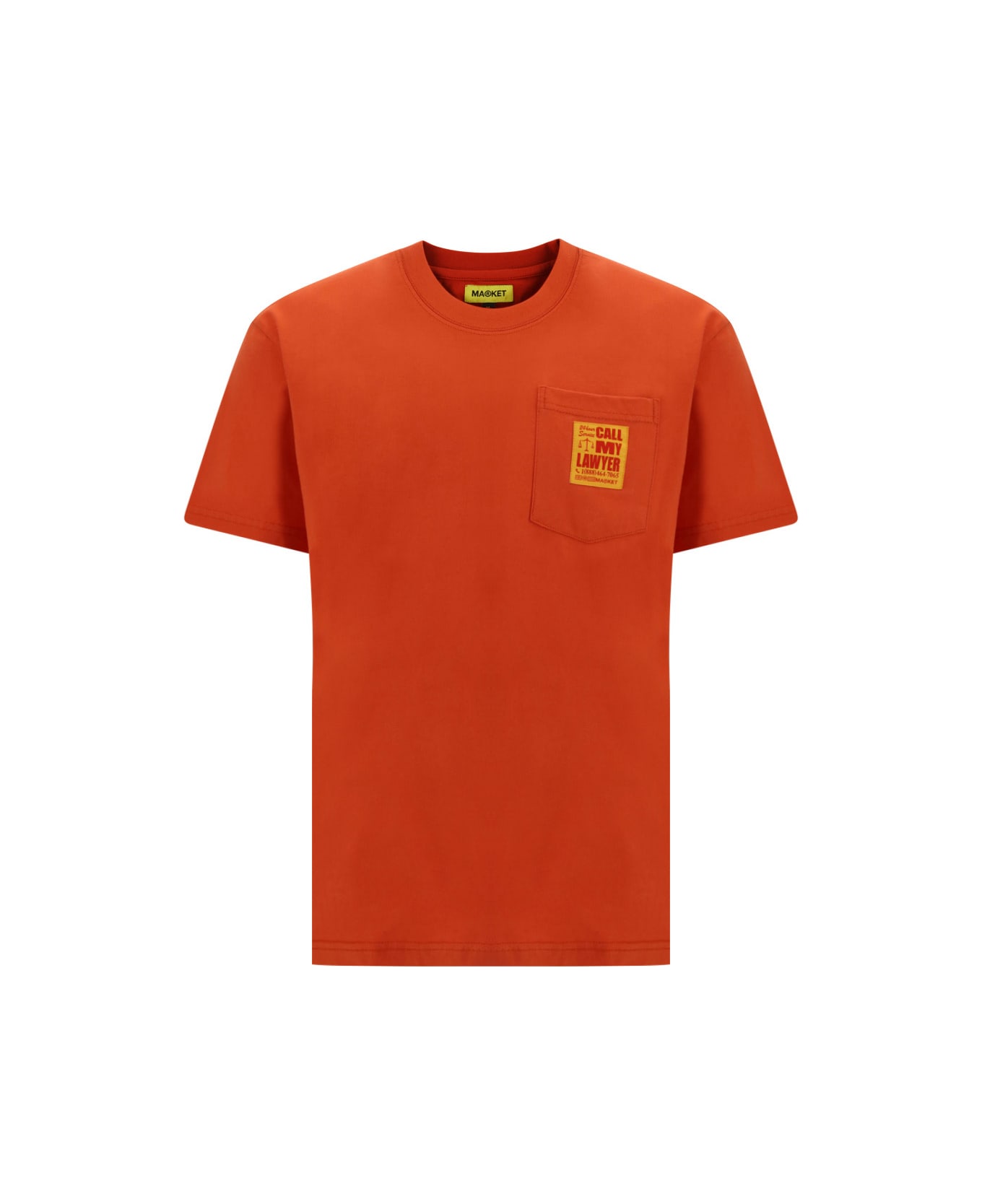 Cotton t-shirt by market,ribbed crew neck, open patch pocket on front, contrast embroidered label on breast pocket, contrast on front, contrast maxi prints on back, regular fit.