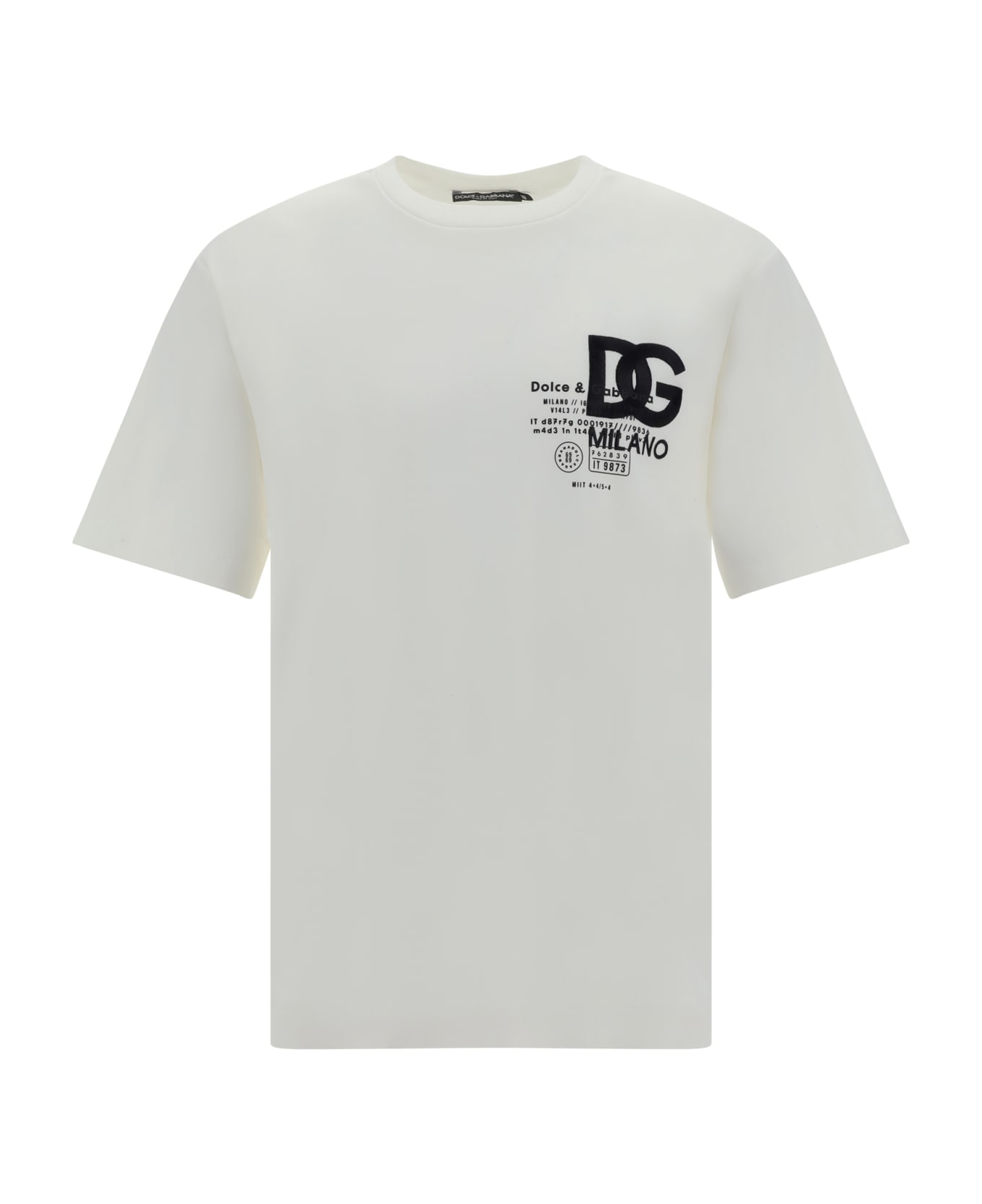 Cotton t-shirt by dolce&gabbana, ribbed crew neck, monochrome design, contrasting embroidered brand iconic logo print on front, regular fit. Composition: 100% % Cotton