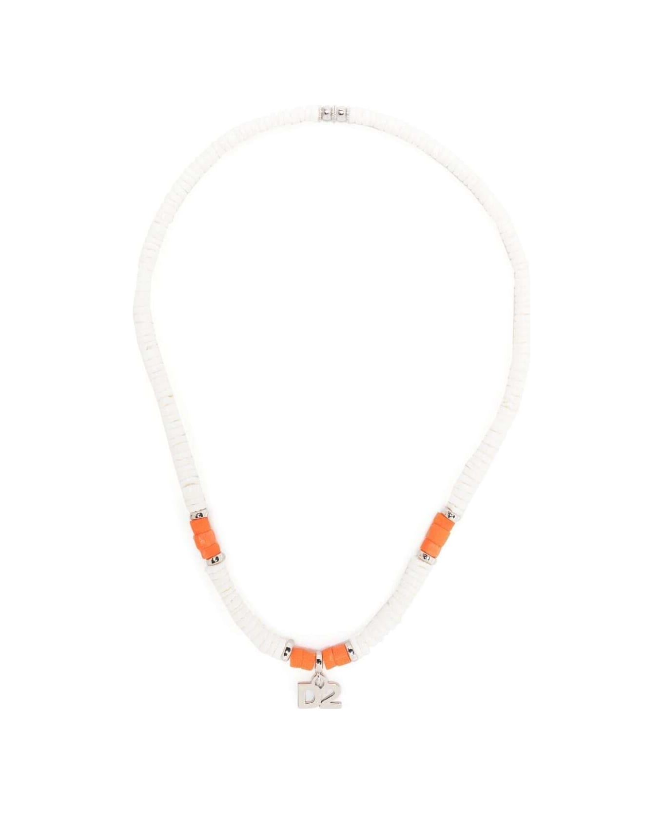 Necklace Beaded design Silver-tone charm White Brass