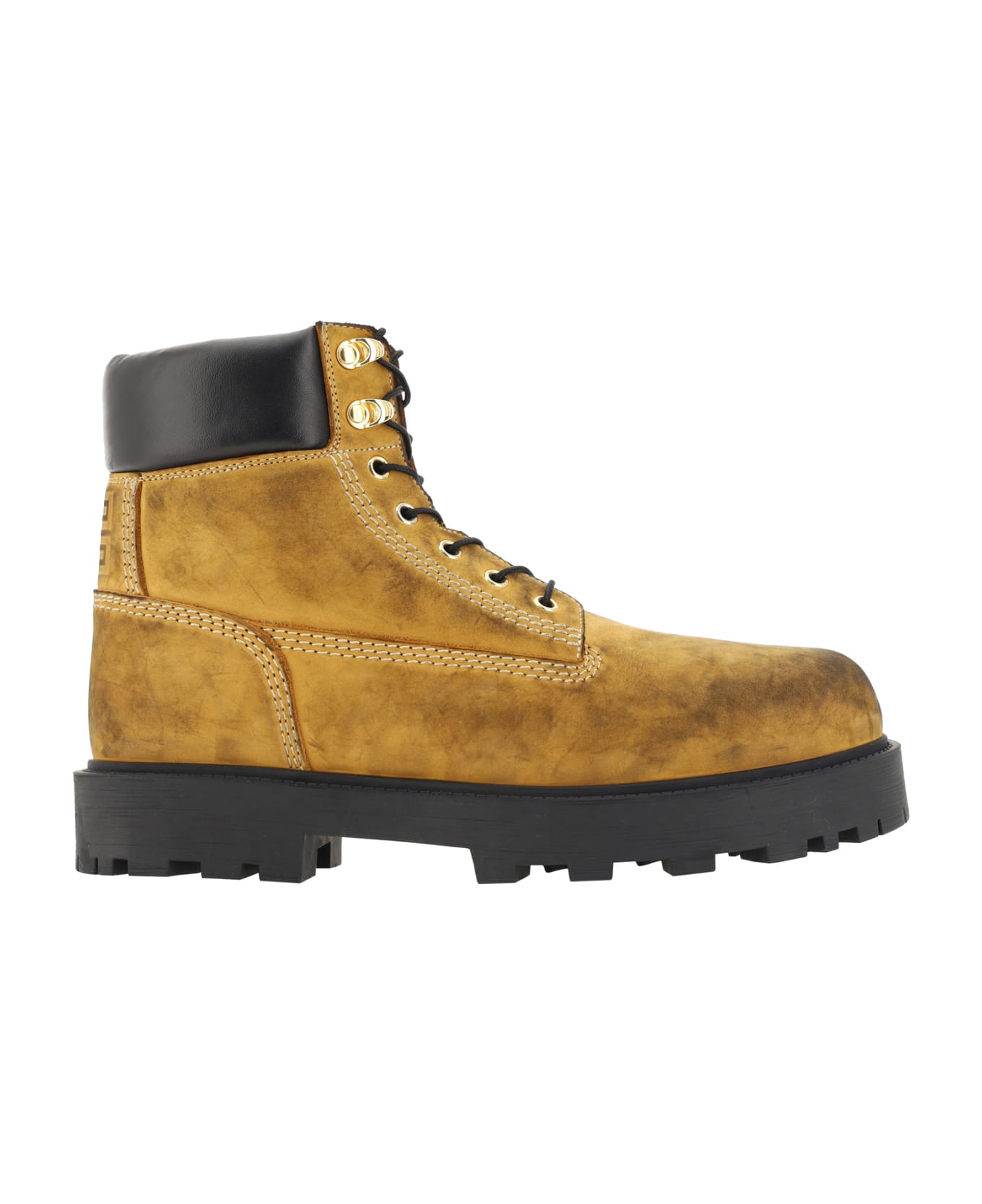 Calfskin ankle boots by givenchy, round toe, suede design, ankle model, fastening with front laces, block heel, contrasting edging on the heel, structured sole.