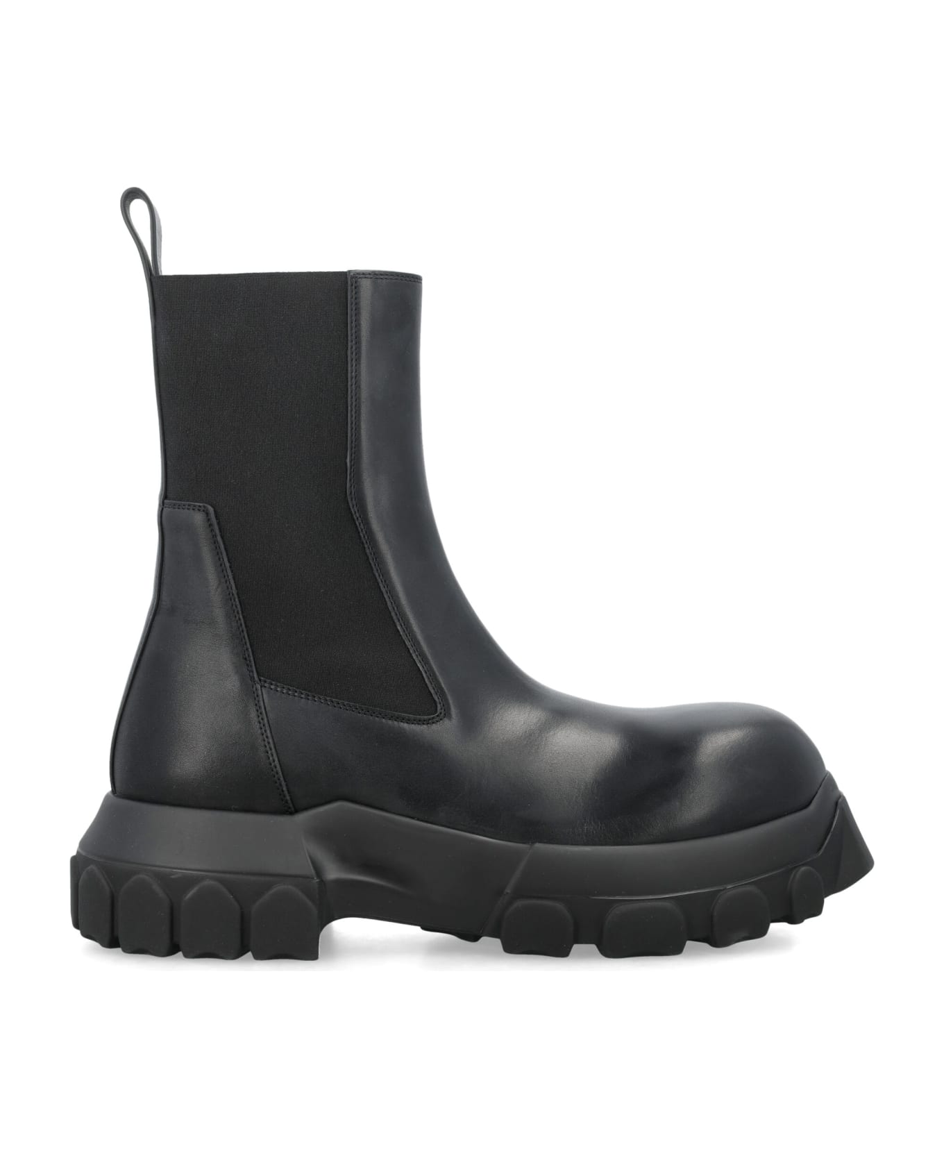 Bozo Tractor Boots By Rick Owens. Featuring: High Top Geometric Side Panels In Stretch Elastic Angular Heel Pull Tab At Back Rounded Toe Tractor Sole