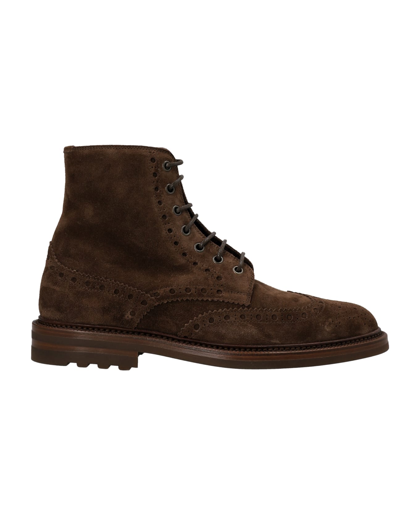 Suede ankle boots with brogue embroidery, laces and a rubber sole. Composition: 100% leather