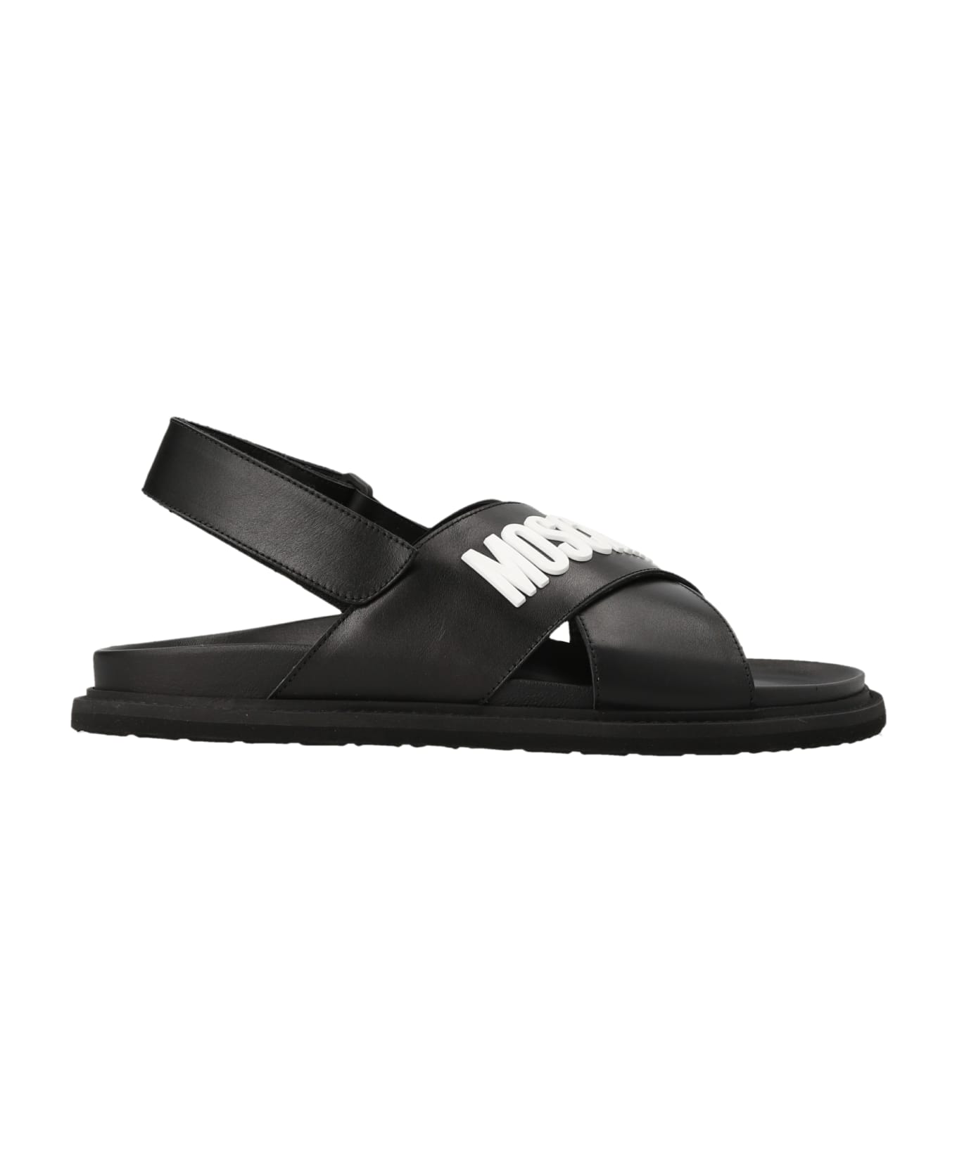 'Lou' leather sandals with crossed bands and contrast logo. Composition: