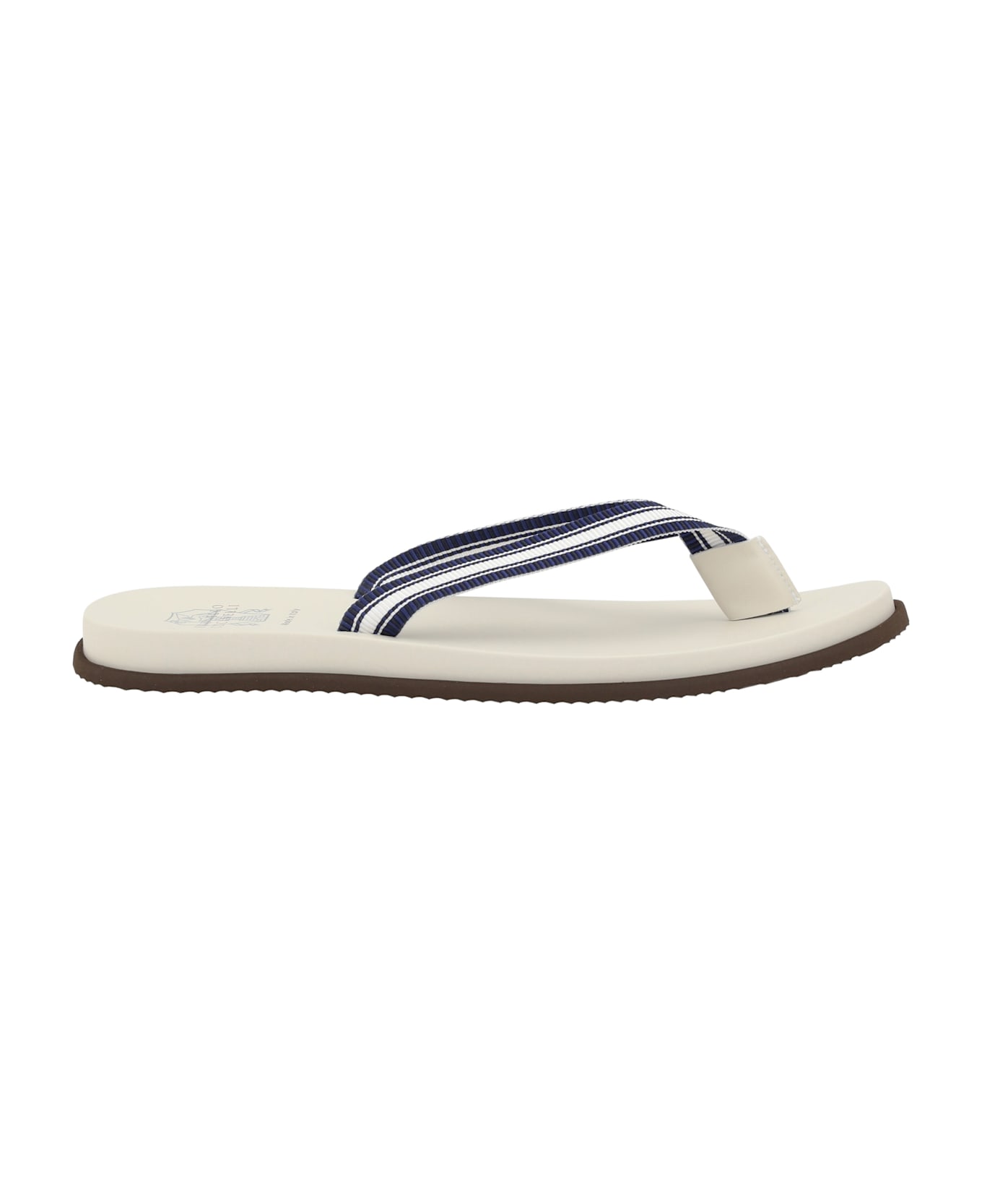 Brunello cucinelli's thong slippers combine comfort and contemporary style. made of durable rubber, they feature a fabric band that adds a touch of understated elegance. the brand's iconic logo printed on the insole completes the design, making them a recognizable and refined accessory for a casual yet distinctive look. Composition: 100% % Rubber