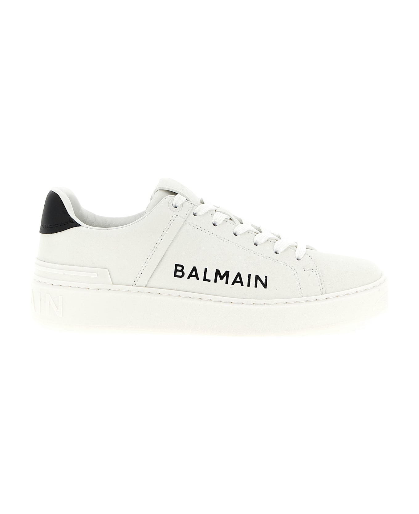 'B-Court' calf leather sneakers with contrast embossed side heel and logo, rounded toe, logo patch tongue, lace-up closure, rubber sole with embossed logo on the back.