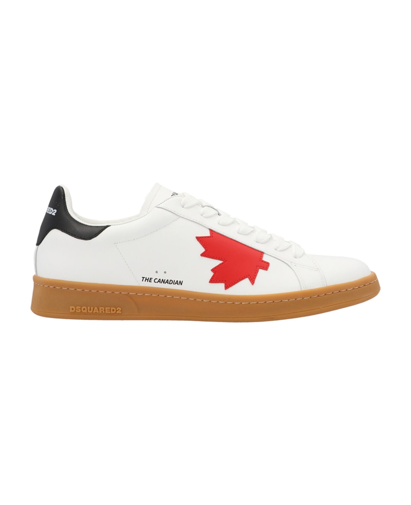 'Boxer' leather sneakers with maple leaf patch and side lettering print, logo on tongue and heel, laces, and rubber sole.
