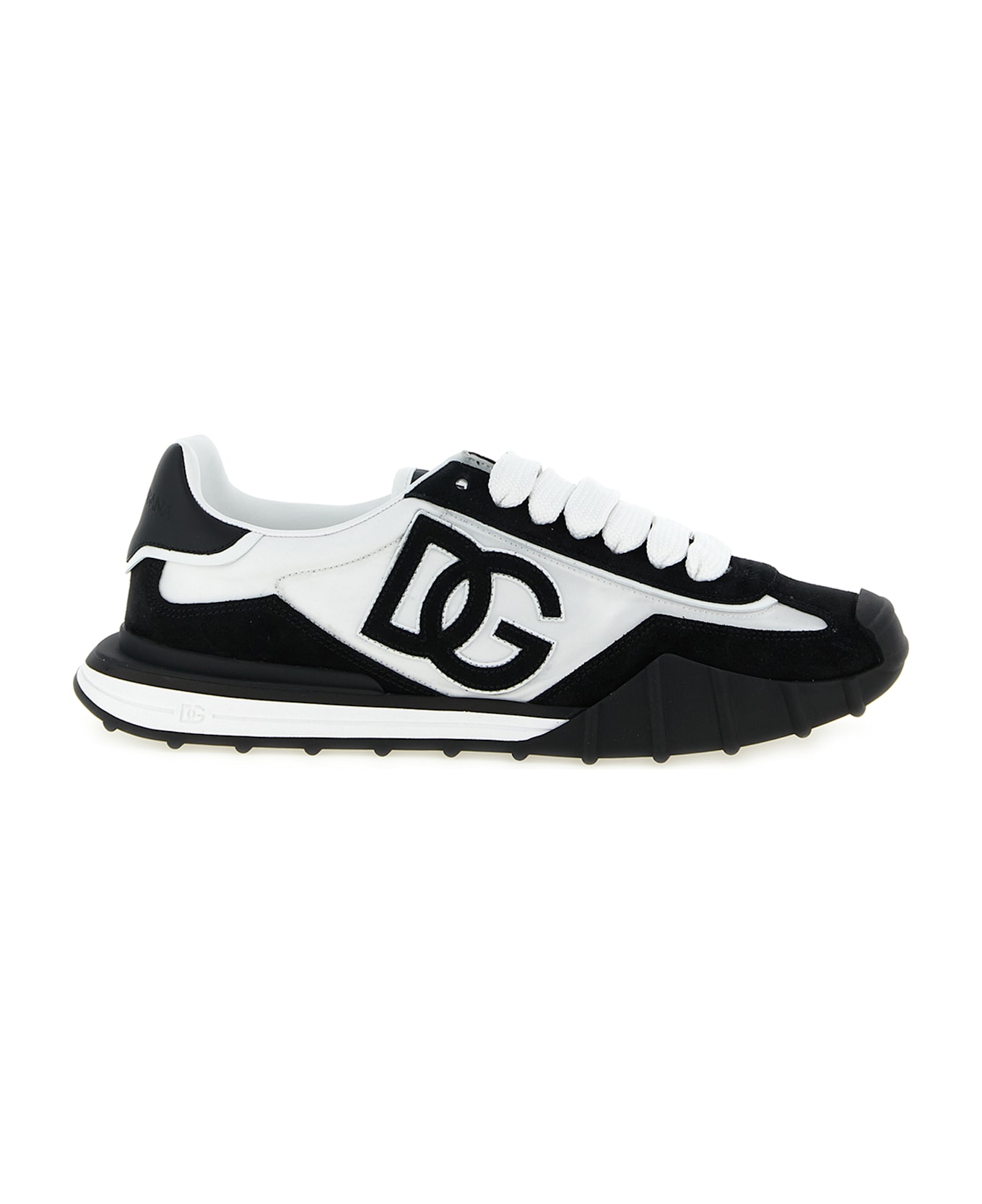 'DG Athletic' suede and canvas sneakers, side logo, contrasting smooth leather heel with embossed logo, lace-up closure, felt insole, thermoformed foam fussbett insole wrapped in leather, rubber, Phylon and TPU sole. Composition: 46% polyamide 54% calf leather
