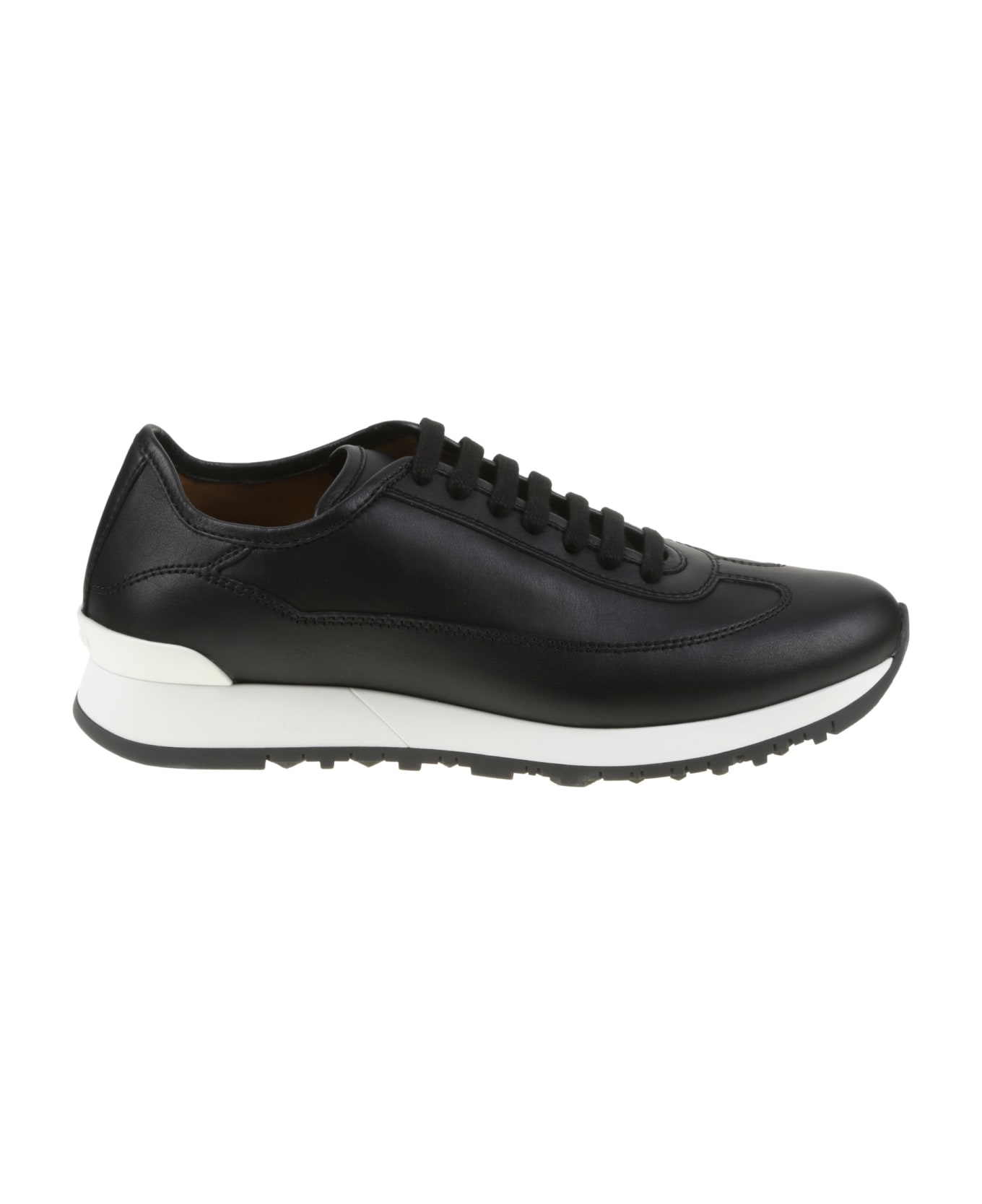 John Lobb Sneaker in black leather, white rubber sole, leather insole.