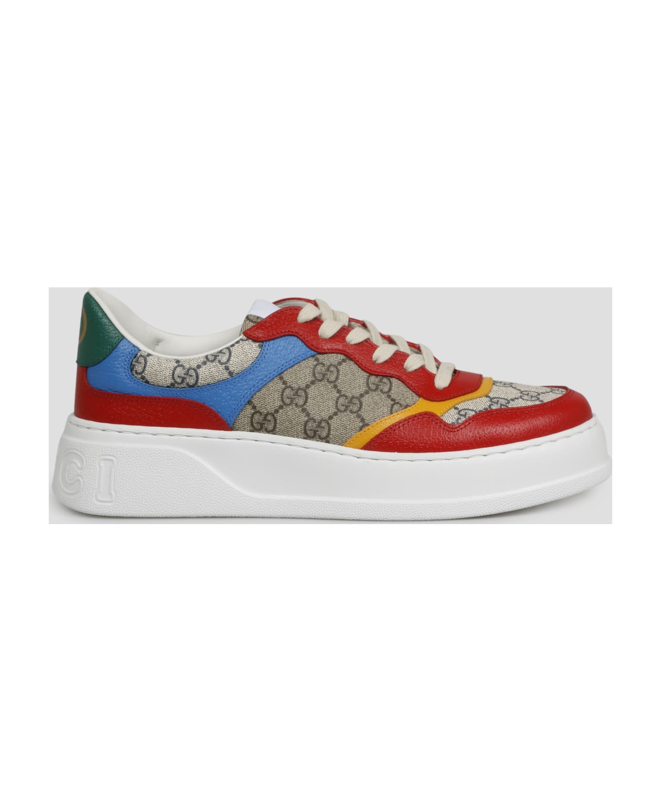 Gucci sneakers, in GG Supreme canvas with Red and blue leather trim. - SS23 - Round toe - Lace up - Jacquard logo label on the front tongue - Double G on the back - Engraved GUCCI lettering on the heel - Rubbel sole - Made in Italy - Leather