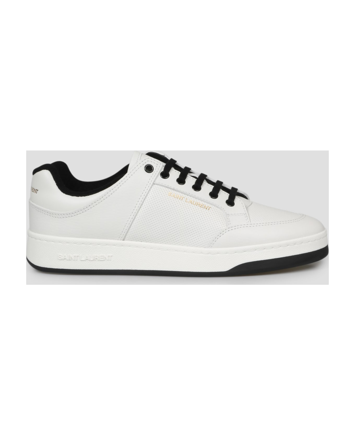 Saint Laurent low top sneakers, in smooth and grained leather. - SS23 - Perforated leather on the front and sides - Round tip - Lace up - Logo embossed on the front tongue - Gold-toned signature along the side and at the back tab - Rubber sole - Made in Italy - Calf leather