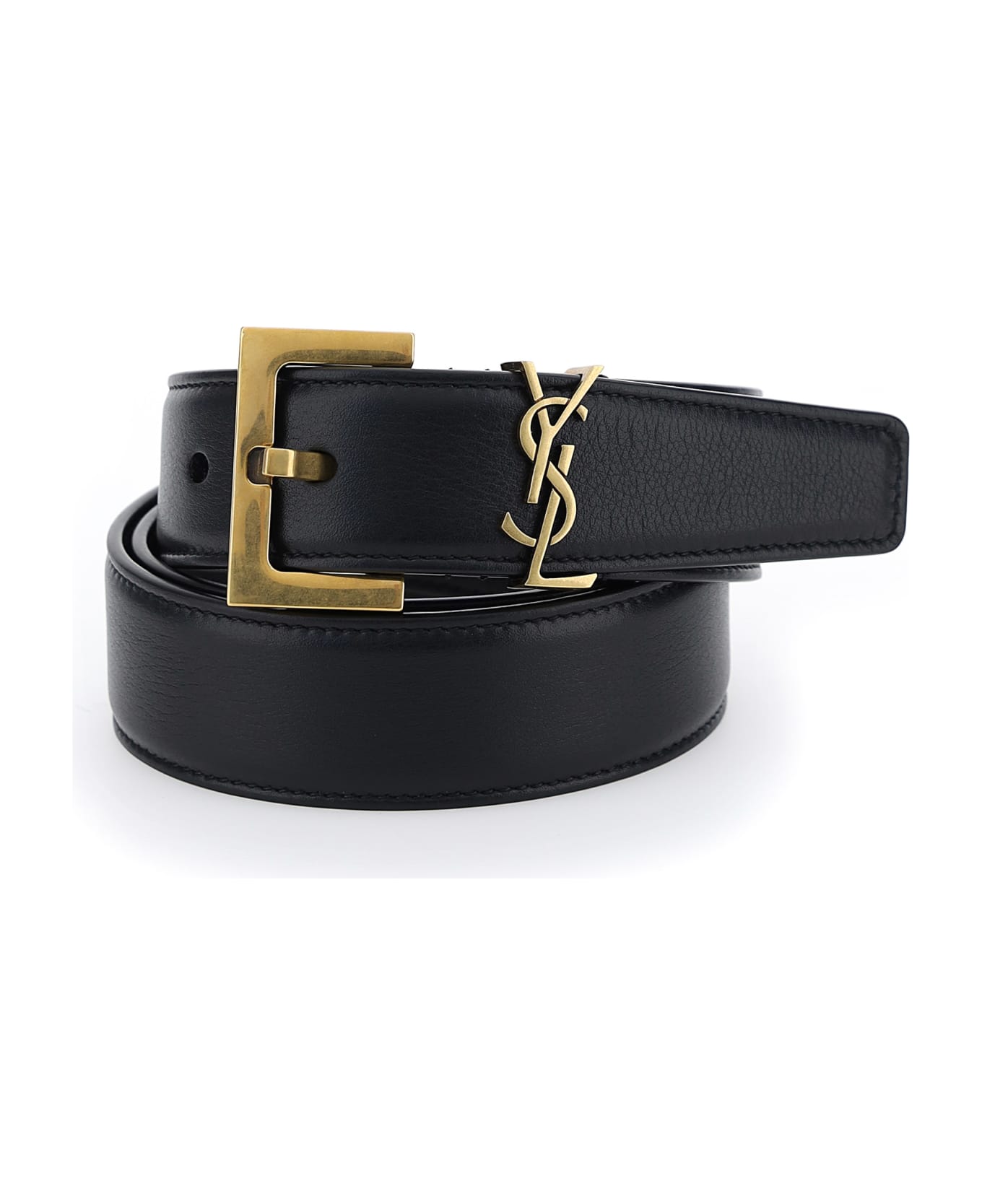 Black calfskin belt by saint laurent, gold-tone logo buckle. Composition: 100% % Calf Leather Bos Taurus