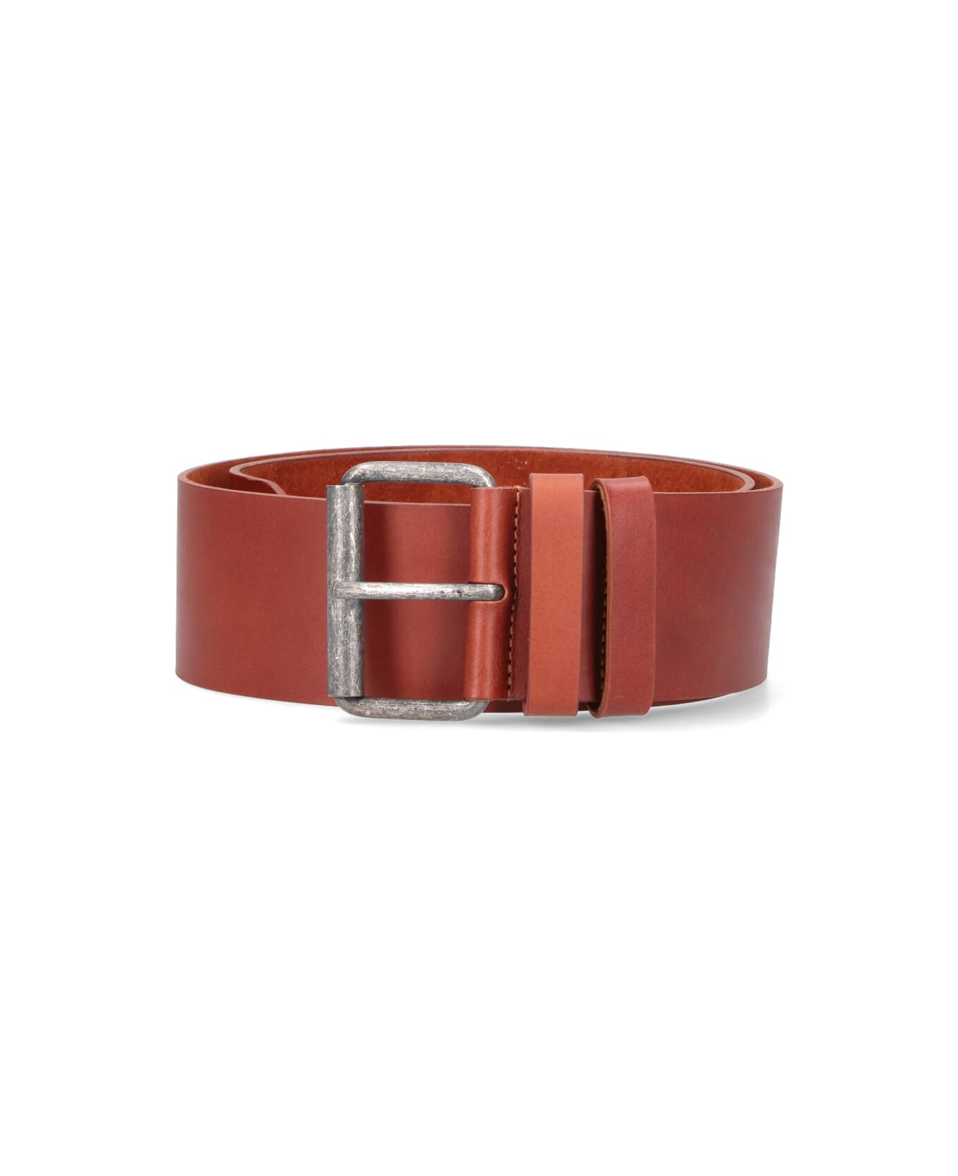 Aspesi brown leather belt, silver metal buckle closure at the front, adjustable.