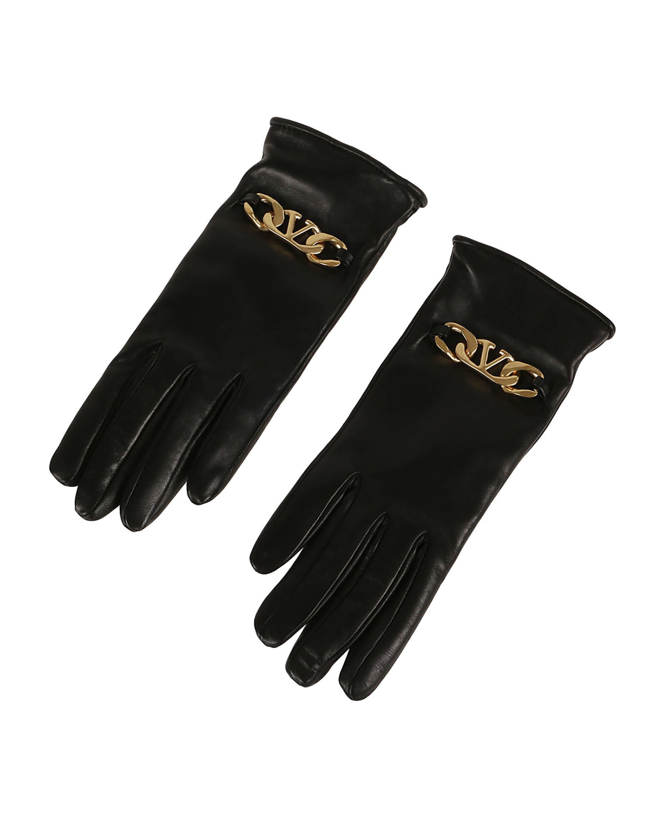 Nappa leather gloves BY VALENTINO GARAVANI. Pure cashmere interior. Embellished with VLogo Chain metal detail in antiqued brass finish. Ideal to be worn on a cold winter day both with a casual outfit and with an elegant, feminine and fashionable outfit!