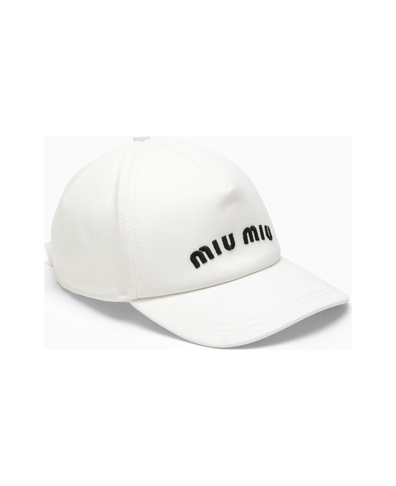 White cotton canvas hat by Miu Miu with logo embroidery on the front, decorative stitching and adjustable size at the back via Velcro. Composition: 100% Cotton