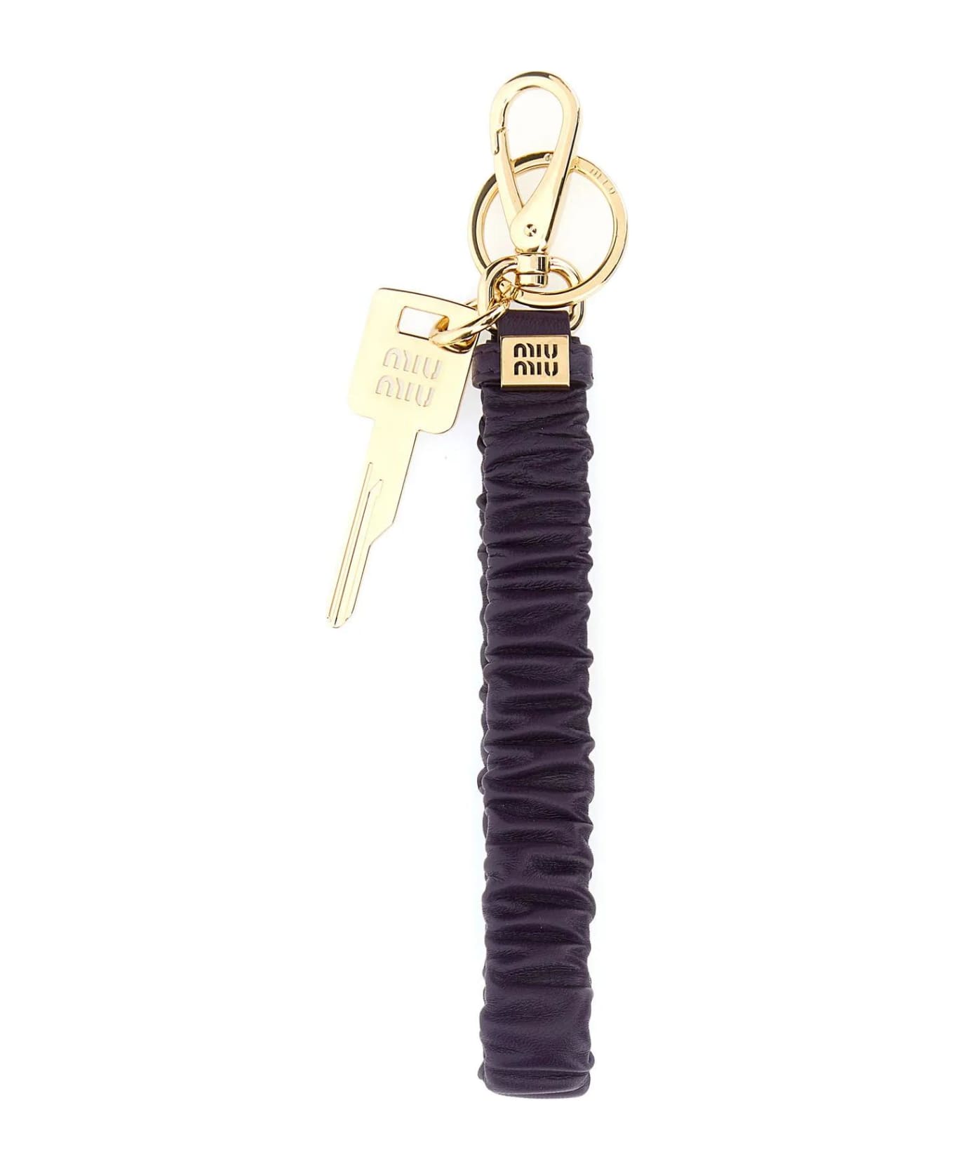 Keyring realized in smooth nappa enriched by metal logoed detail at the front. - Key ring and hook Composition: Exterior: 100% Nappa 100% Metal Finishing color: Gold