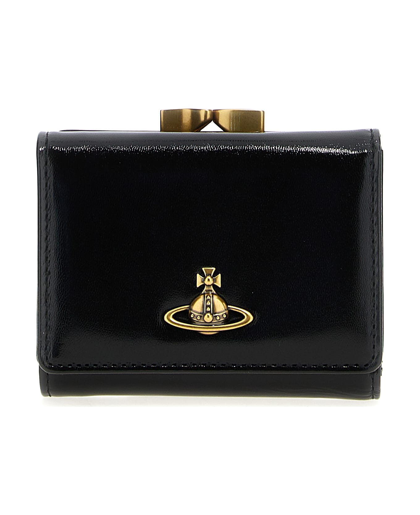 Leather wallet, metal Orb logo on the front, flap closure with snap button, snap closure. Composition: 100% leather