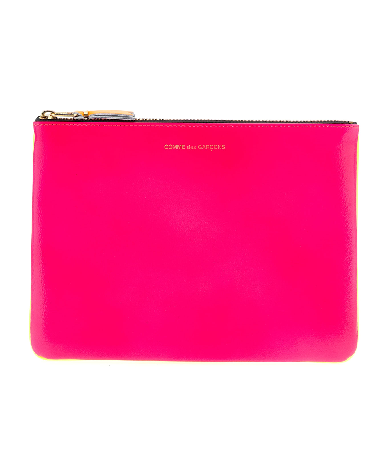 'Super Fluo' leather wallet, front embossed logo, top zip closure.