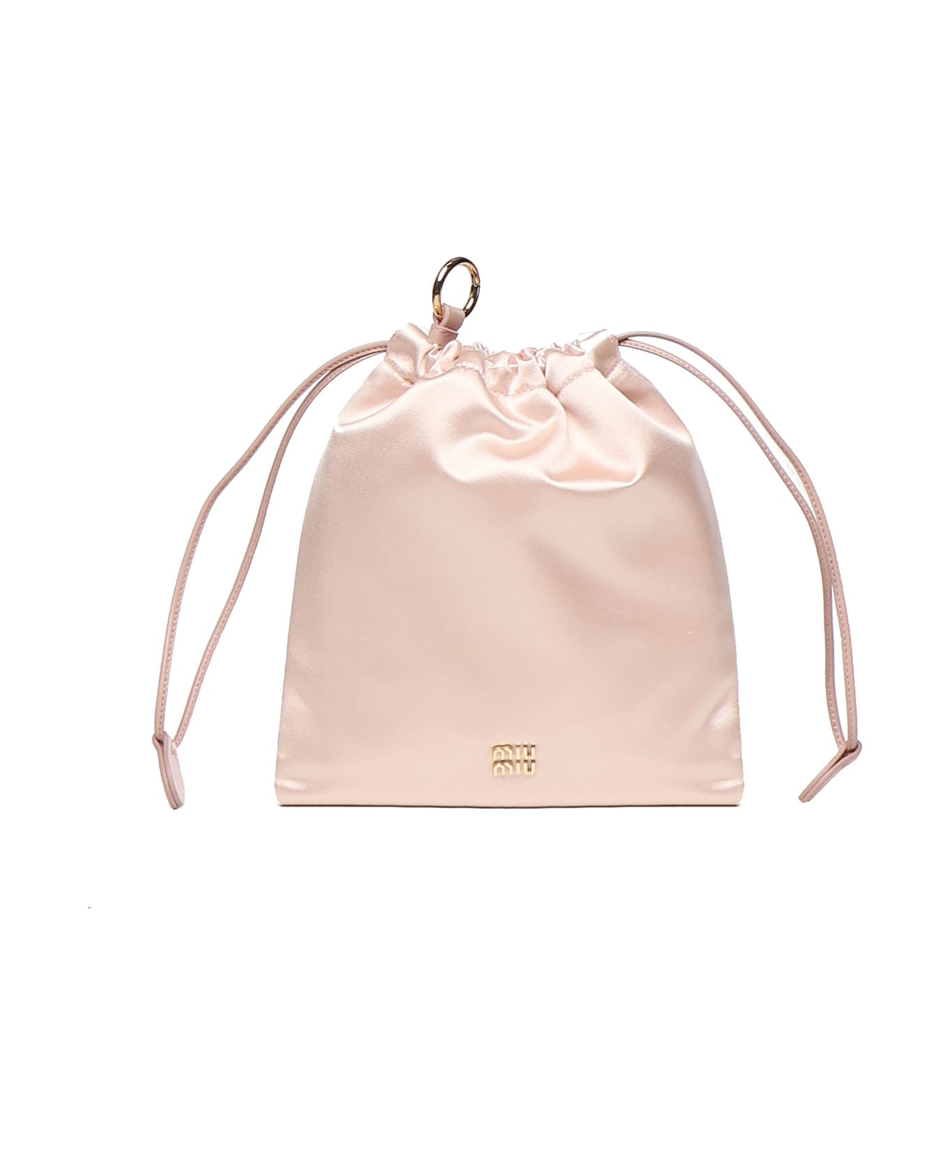 -With snap hook -Leather drawstring -Leather drawstring closure -Metal lettering logo -Satin fabric interior -Measurements: 21 x 18 cm -Made in Italy -Color: Pink Composition: 100% Silk
