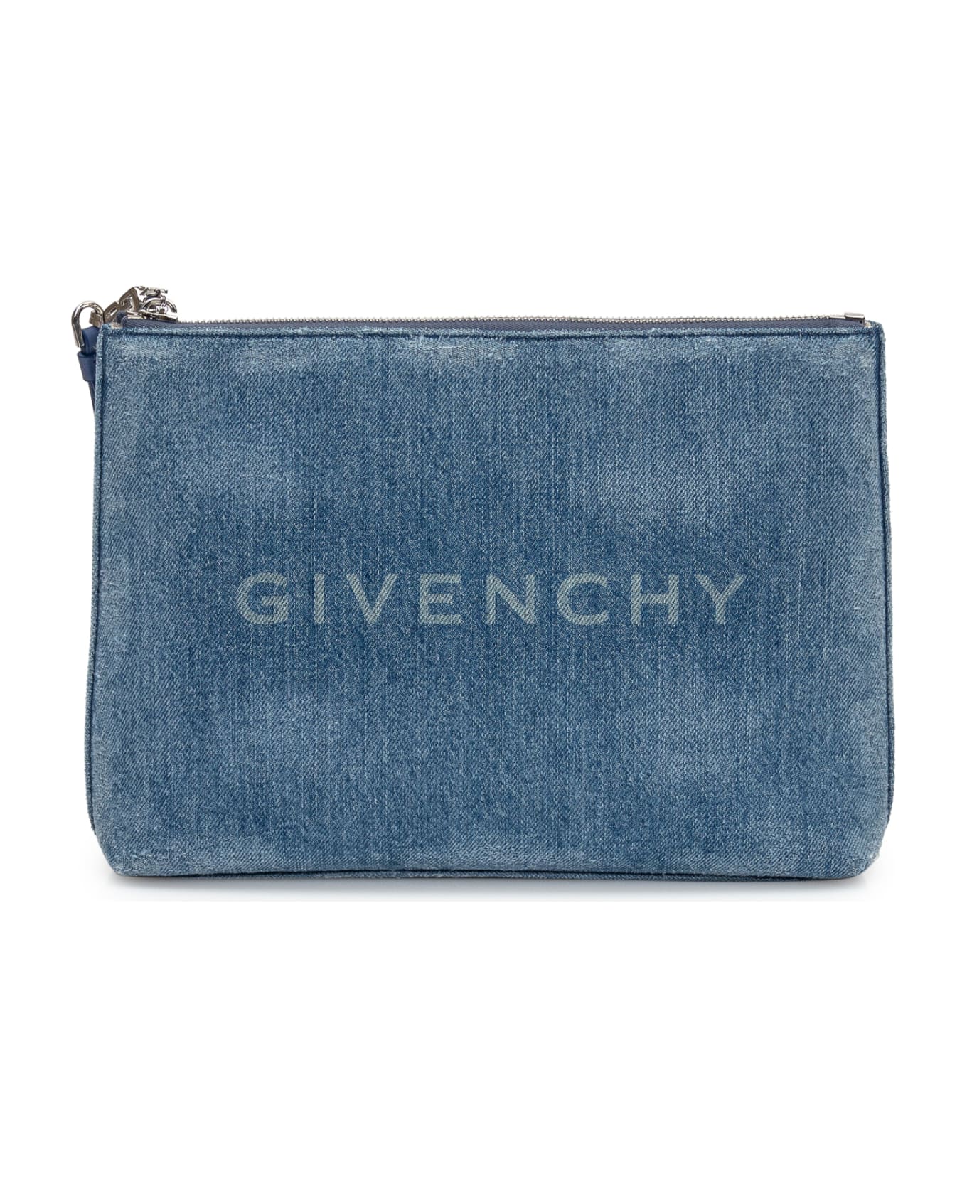 Medium size cotton denim bag. Zip closure. Inside pocket. G4 logo on the zip. Logo printed on the front.