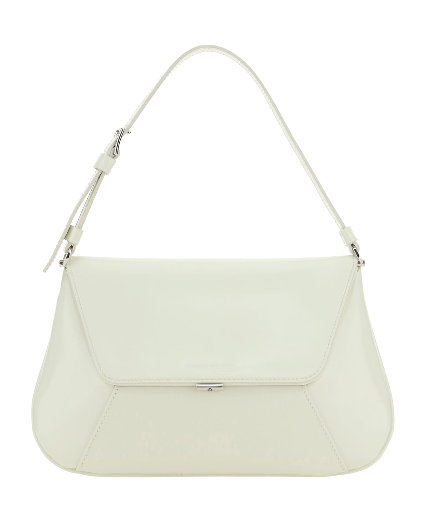 Calfskin handbag by amina muaddi, adjustable flat handle, geometric design, flap with magnetic closure on front, patent leather design. Composition: 100% % Calf Leather Bos Taurus