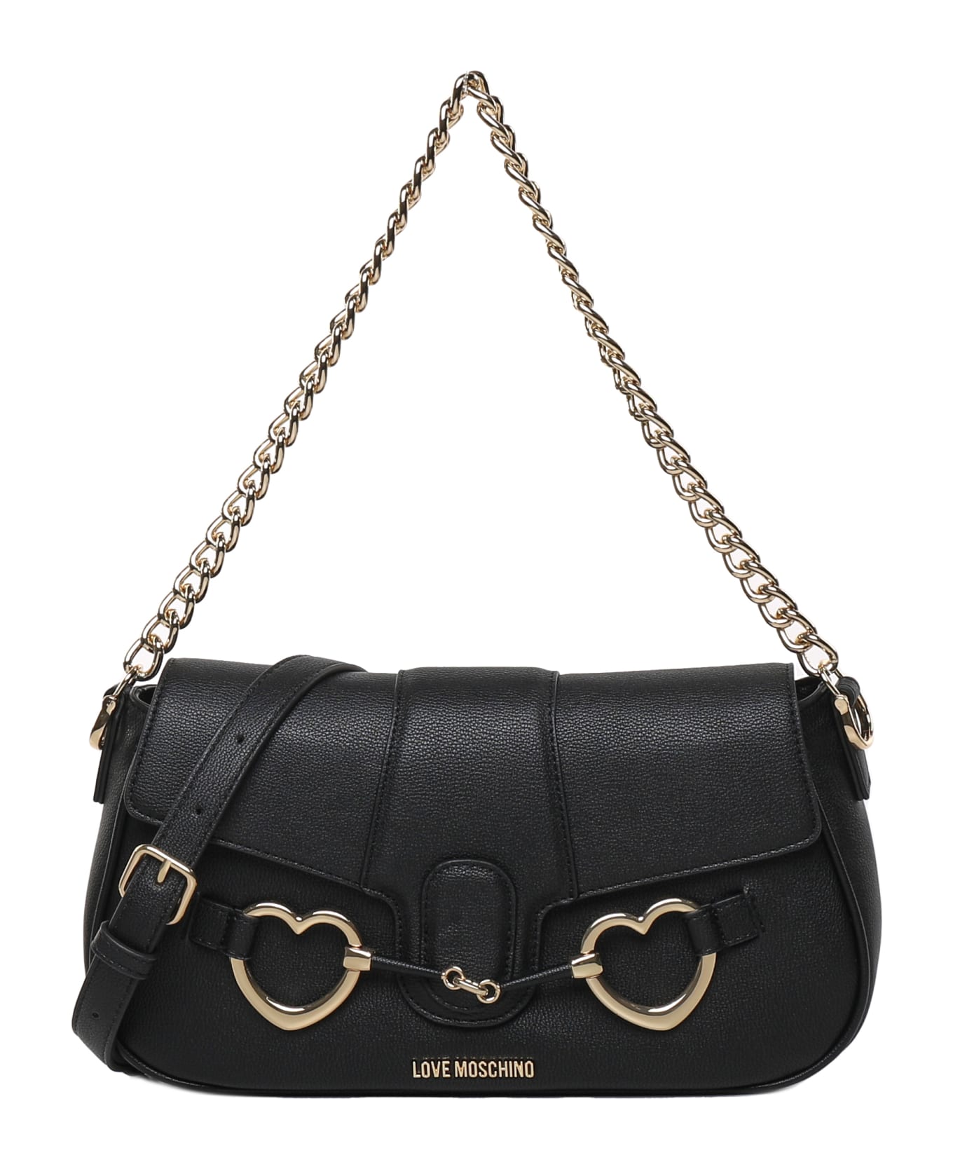 Black Hearts Shoulder Bag from Love Moschino -Lined interior -Details in golden metal -Multifunctional internal pockets -Adjustable and removable shoulder strap -Made in Italy -Colore: Nero -100% Leatherette