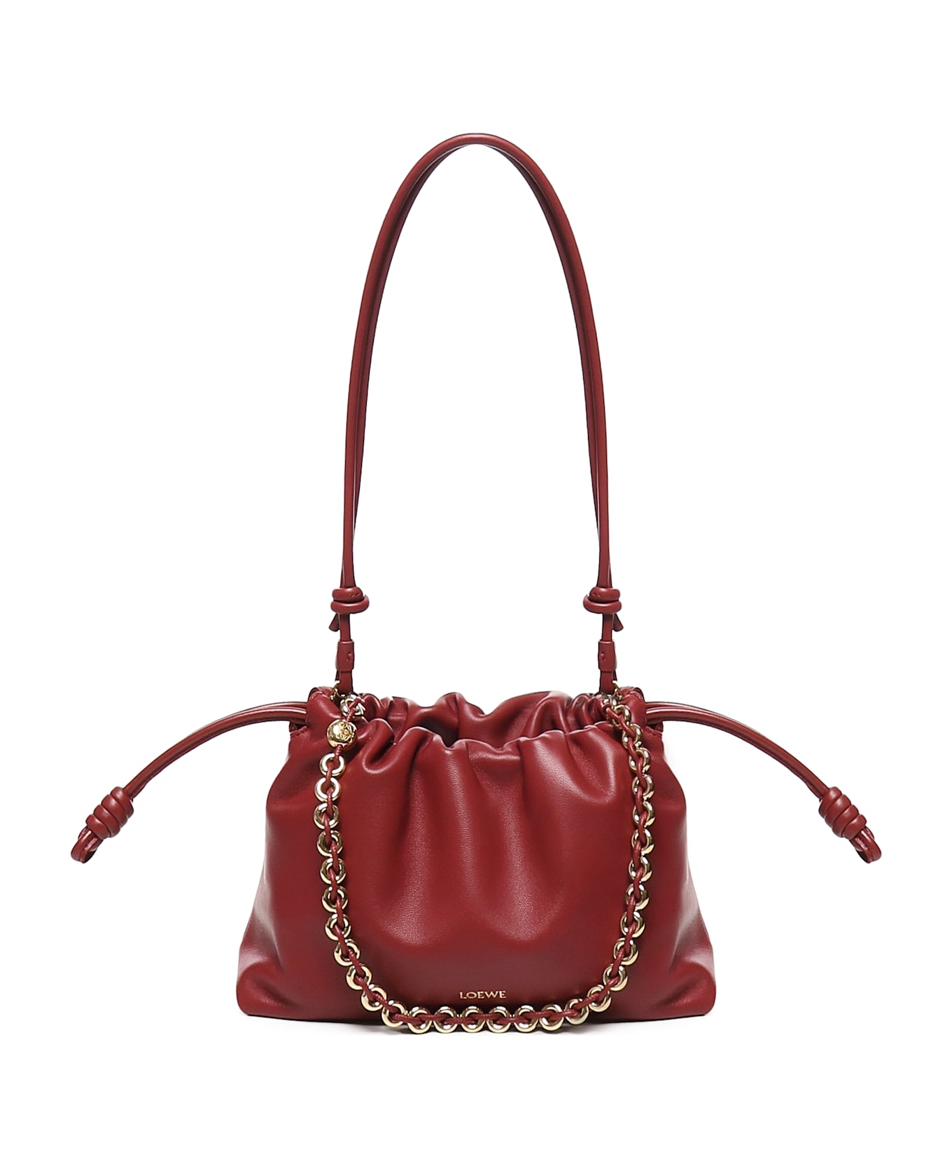 -Wearable: shoulder, cross-body or hand-held -Removable Donut chain with Anagram Pebble -Removable and adjustable shoulder strap -Magnetic closure -Suede lining -Logo details -Made in Spain -Dimensions: 30 x 20 x 10. 5 cm -Colour: Red