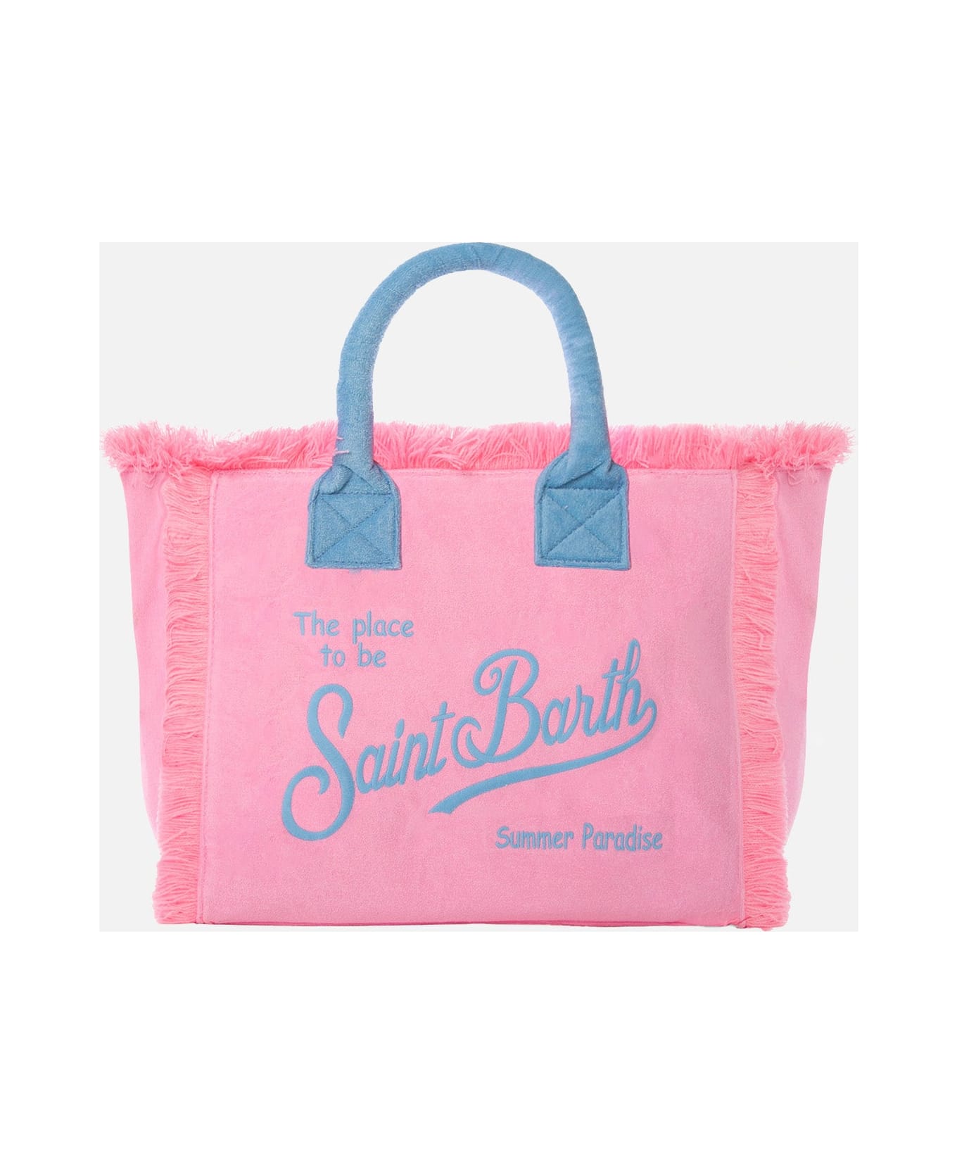 Colette pink terry fringed handbag Light blue Saint Barth logo Inner flap with metal zip Inside pocket with zip Sizes: 30 x 22 x 15 cm Composition: 100% cotton