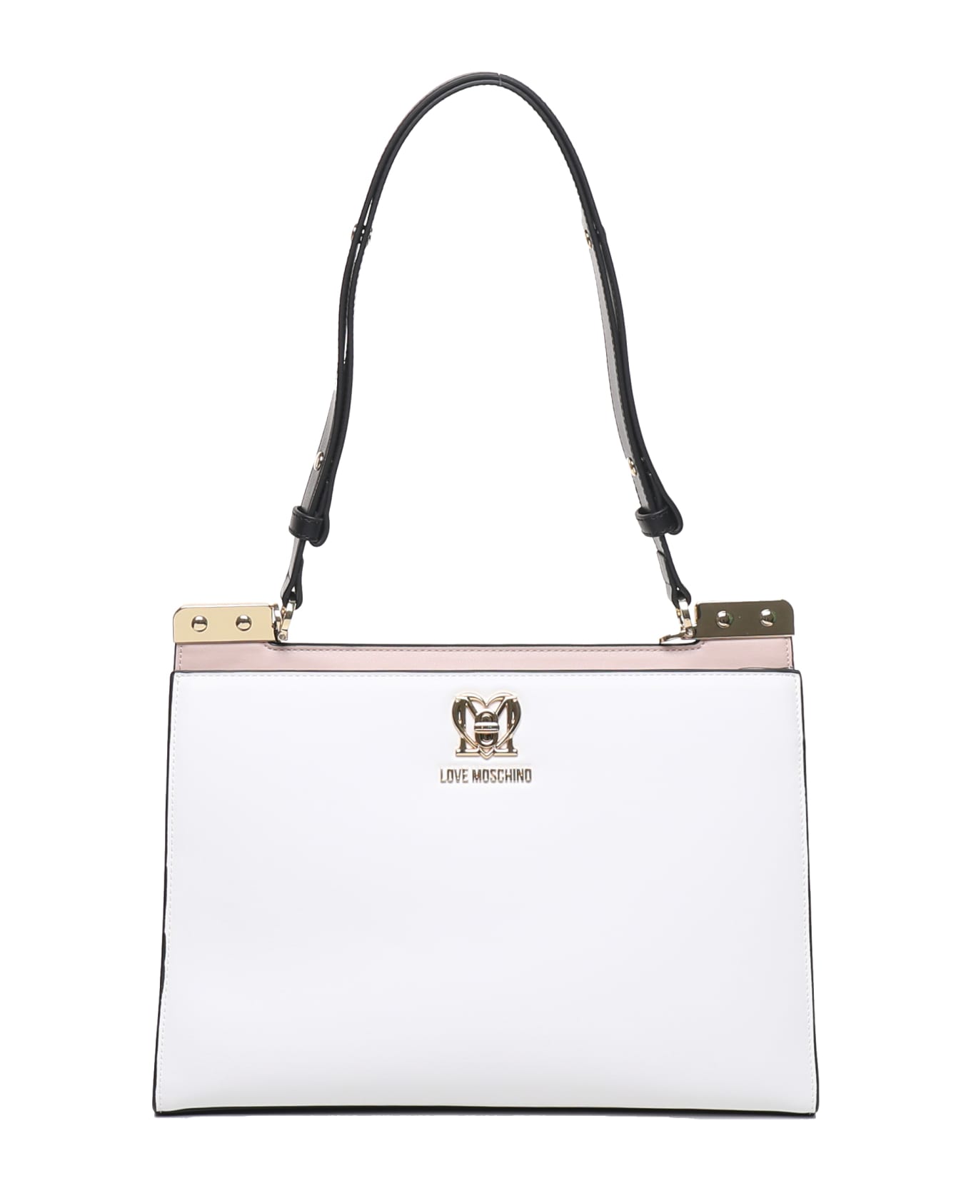 White, nude Shopper With Plated Logo from Love Moschino -Adjustable handle -Double compartment with button and padlock -Measurements: 26x27x14cm -Made in Italy -Colour: White -100% Calfskin