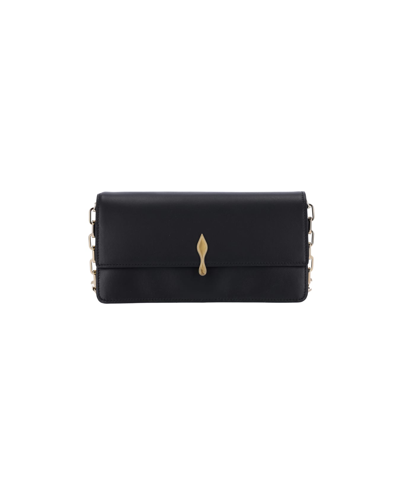 Christian Louboutin 'bettina' shoulder bag in black lamb nappa leather, front button flap closure, silver metal chain shoulder strap, metal detail on the front, inner zip pocket, two main inner compartments. Composition: 100% Lambskin