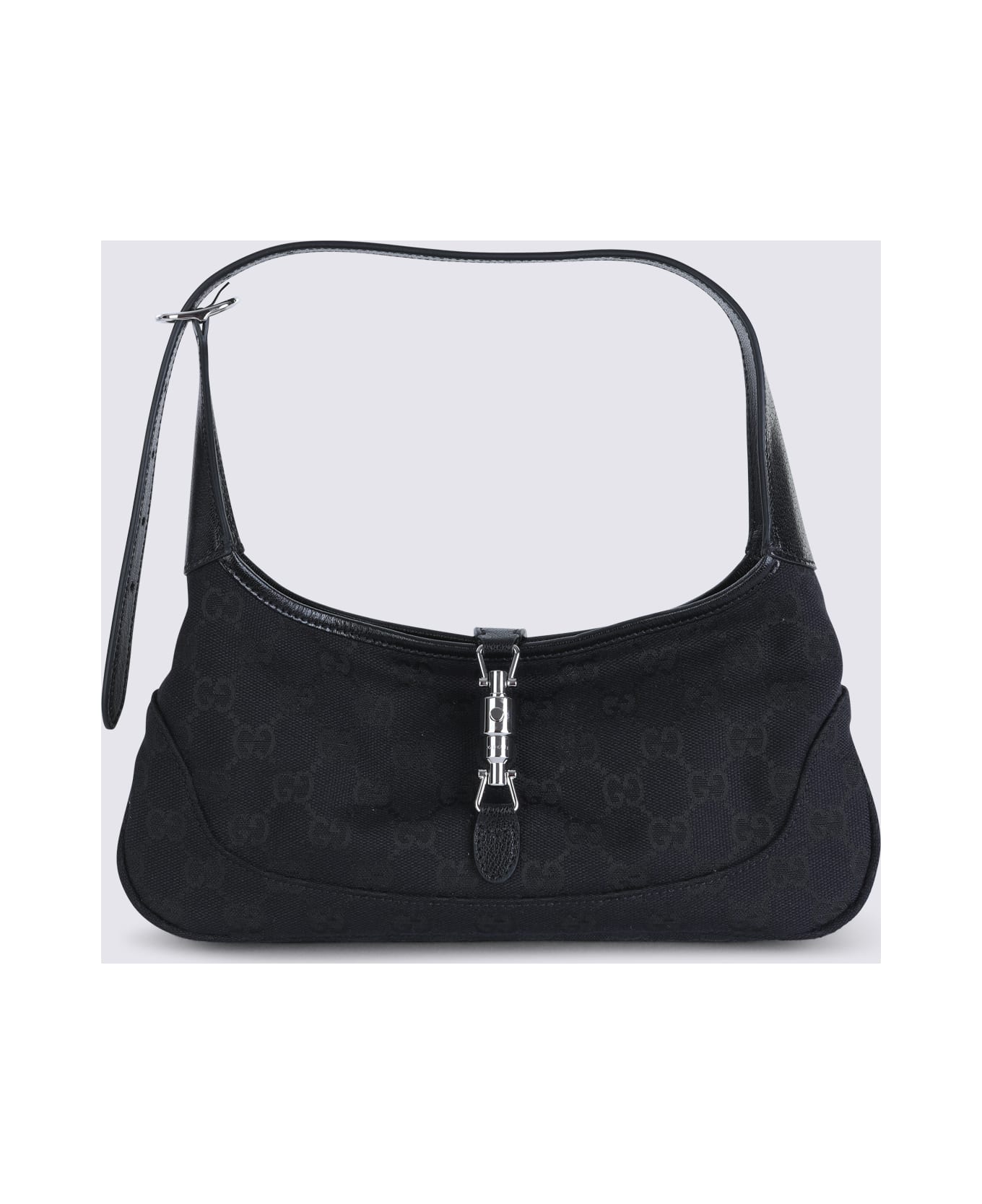 Black Jackie Hobo small shoulder bag from Gucci featuring adjustable handle, silver tone hardware, piston closure, GG logo texture and main compartment.