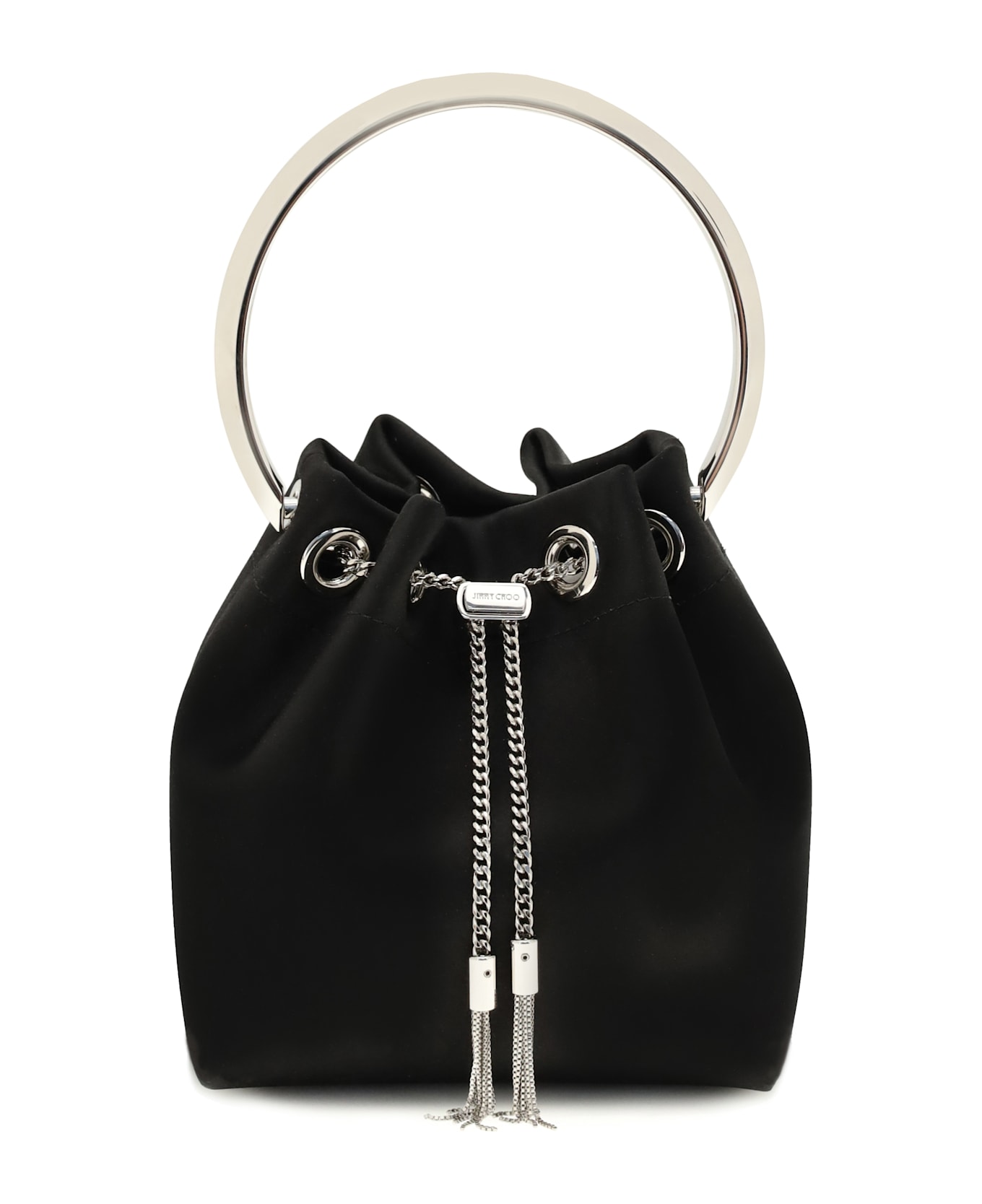Bon bon bucket bag by jimmy choo is an elegant and striking accessory. made of silk, it features a round metal handle and a chain drawstring closure that adds a sophisticated and contemporary touch. the single interior compartment provides essential space for essentials, making it perfect for evening events and special occasions. Composition: 100% % Silk
