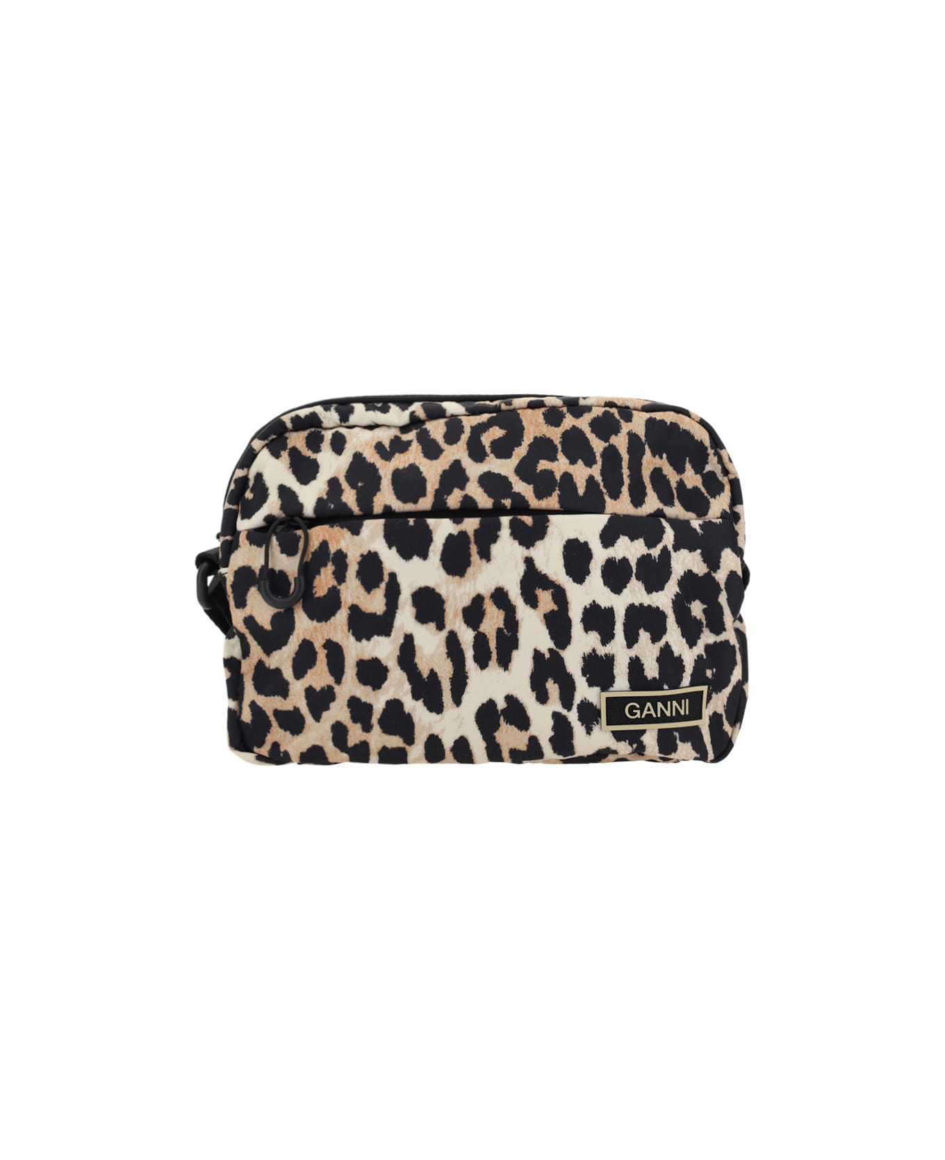 Festival bag by ganni, top zipper closure, front welt pocket, removable and adjustable flat webing shoulder strap, front applique label with iconic brand signature in contrast, all-over animal leopard print design. Composition: 100% % Polyester