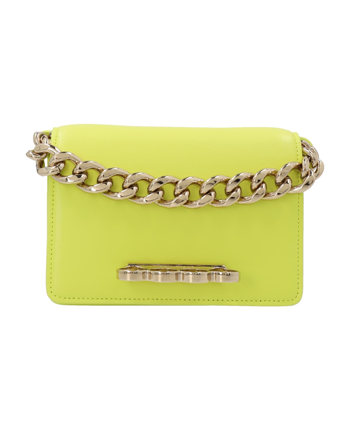 'Four Ring Mini Chain' leather crossbody bag, featuring a flap closure with jewel detailing, an adjustable shoulder strap. Composition: 100% leather