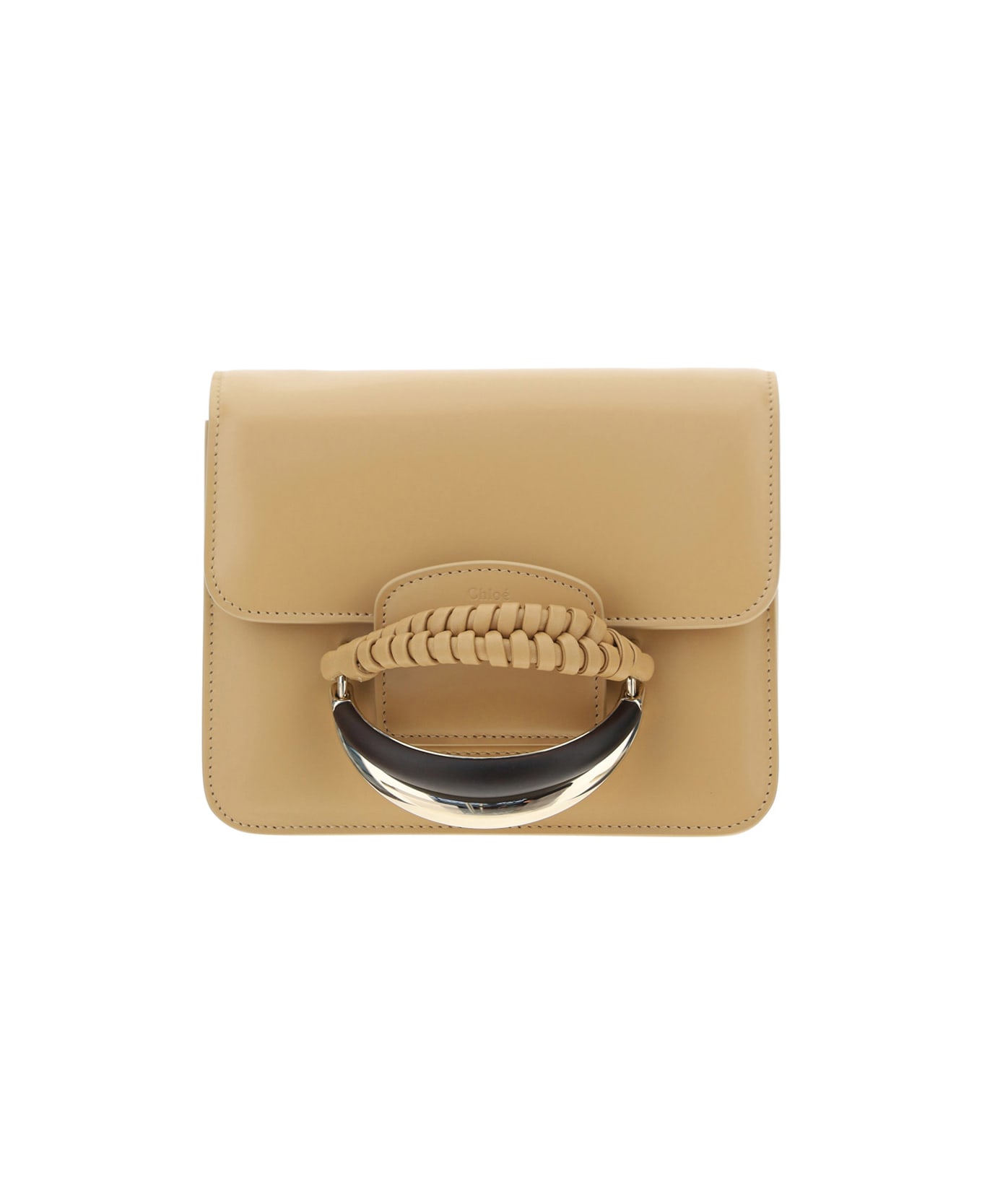 Soft tan Kattie Bag from Chloé Calfskin Kattie Bag by See by Chloé, removable and adjustable shoulder strap, magnetic snap closure, two main compartments, one internal welt pocket, nappa leather interior, semi-circle detail on front, contrasting trim.