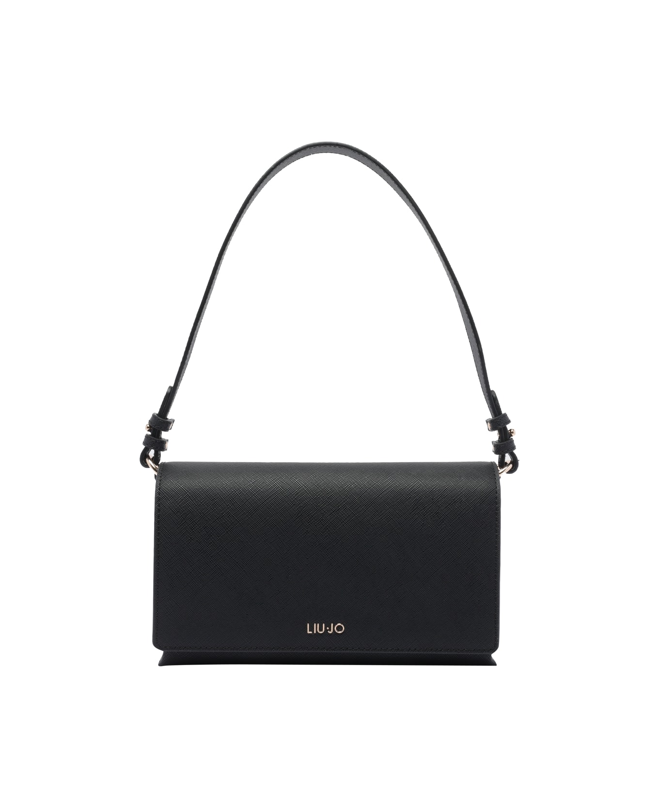 LIu Jo black Logo shoulder bag, magnetic closure, inner open pocket, removable and adaptable strap, frontal logo