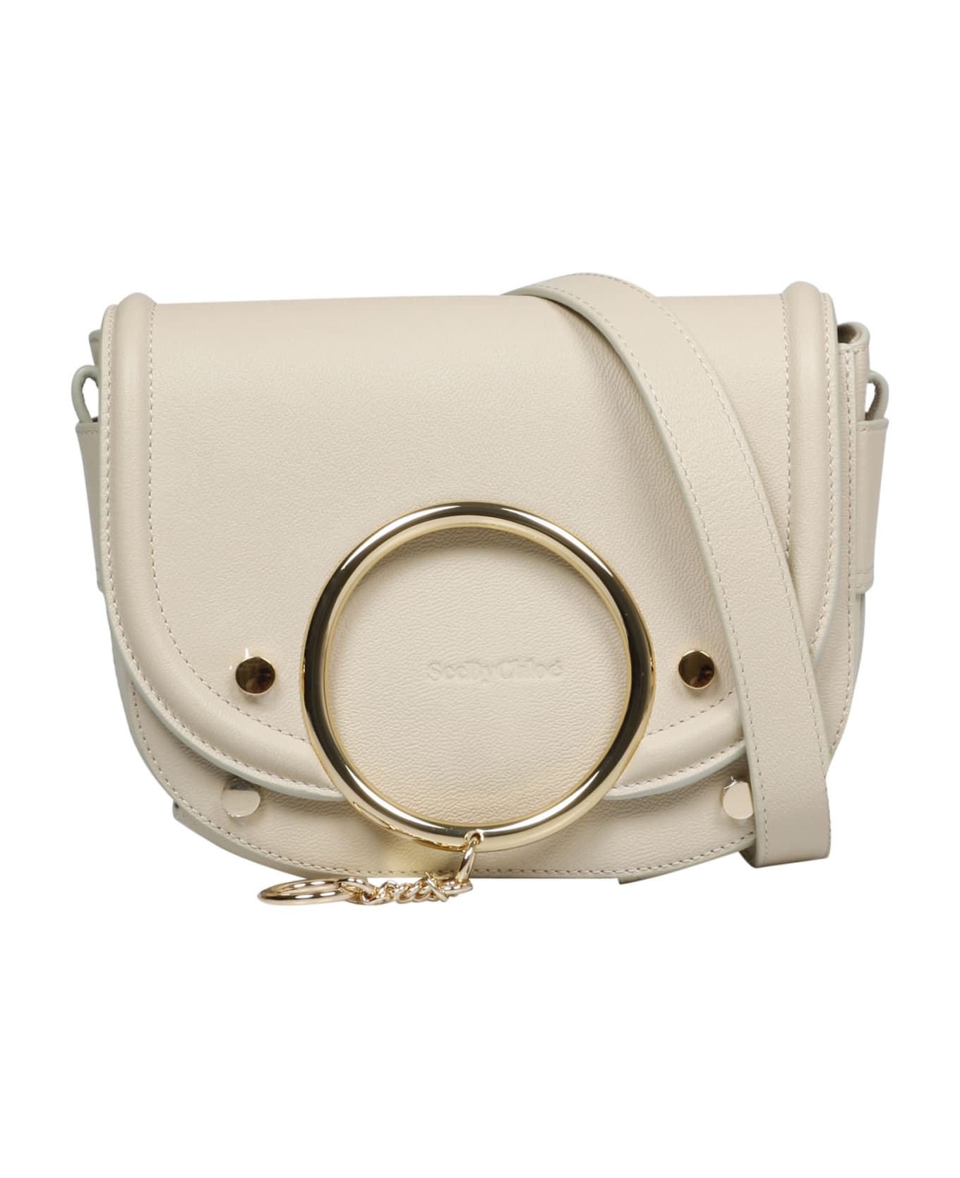 See by Chloè Mara shoulder bag, in grained leather with iconic oversize rings with charms. - w: 22cm, h: 18cm, d: 9cm, Strap: 58. 5cm - Adjustable and detachable leather strap - Front embossed logo - Magnetic clousure - Inner slip pocket - Gold toned hardware - Made in India - Cow Leather