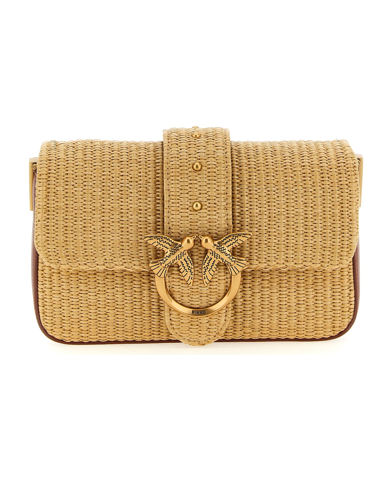 'Mini Love Bag Slouchy' shoulder bag in crochet and leather woven raffia, magnetic flap closure with studs and maxi metal 'Love Birds Diamond Cut' logo on the front, leather logo patch at the back, cotton drill lining, adjustable and removable maxi shoulder strap, chain shoulder strap with adjustable and removable leather protection. Handcrafted product, any imperfections are to be considered characteristics of uniqueness.