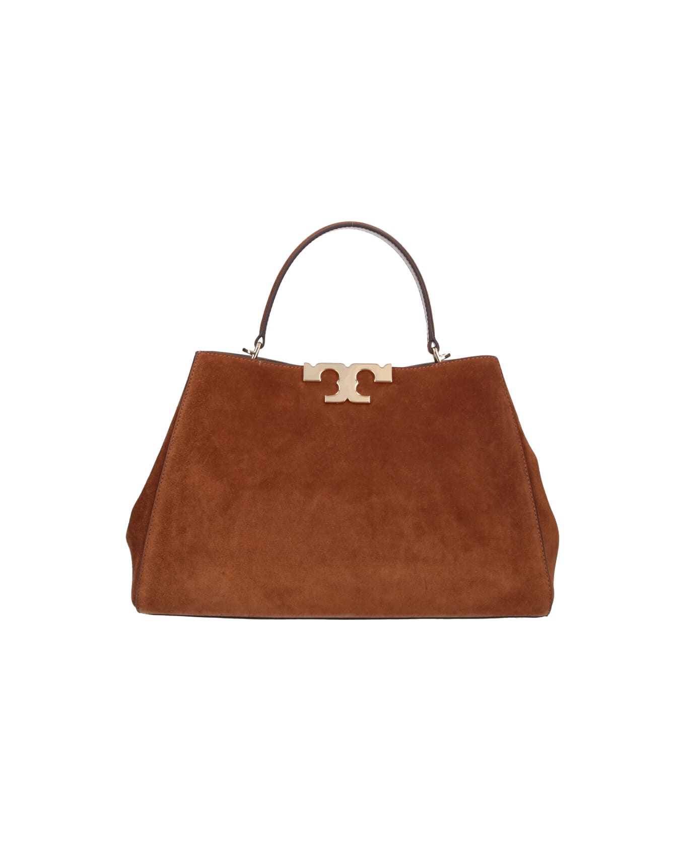 - Shoulder Bag "Eleanor" in brown calf suede - one top handle - adjustable and removable shoulder strap - "Double T" metal logo on the front - one internal button pocket - two main internal compartments