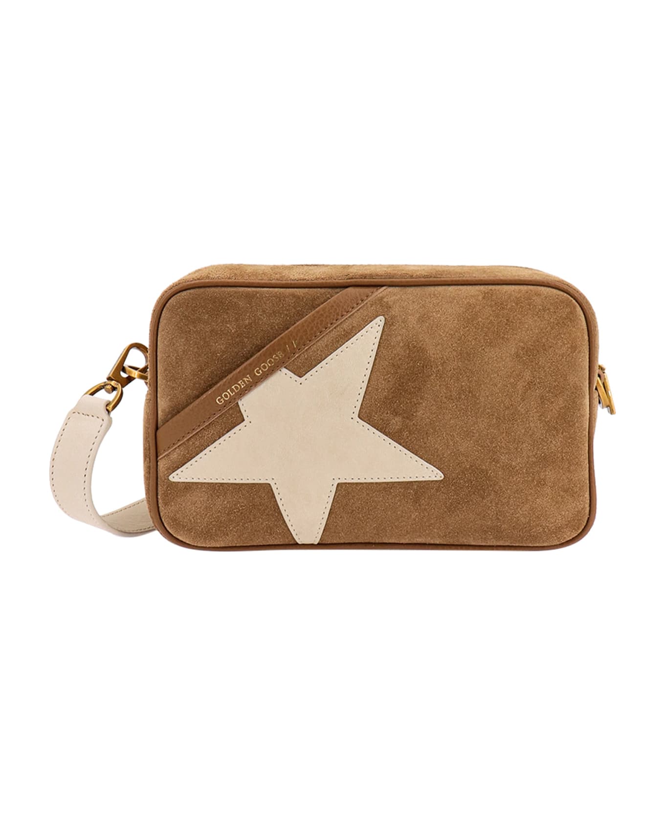 Suede shoulder bag with Star logo patch on the front