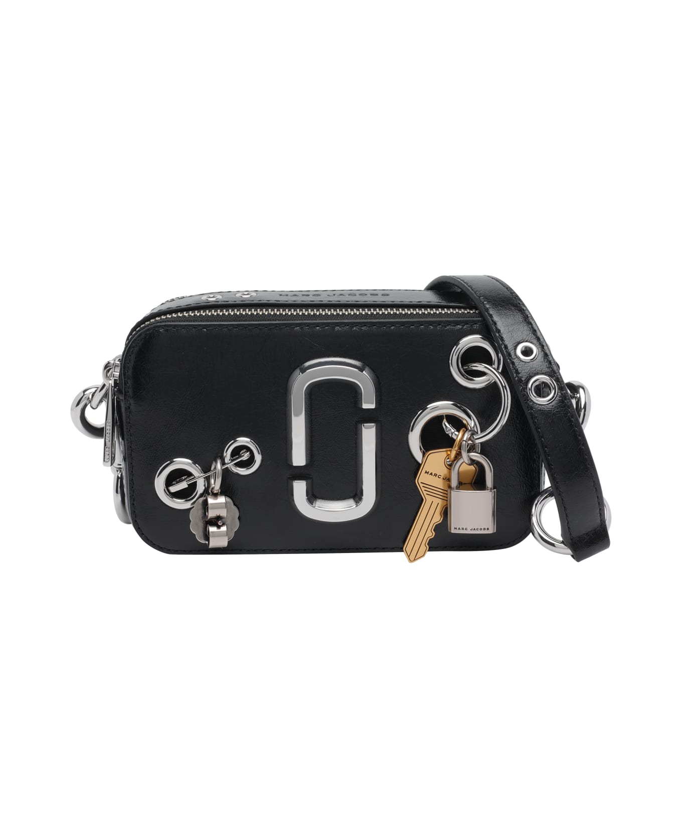 Marc Jacobs black The Grommet Charm snapshot, zip closure, 2 compartments, inner open pocket and one external pocket, adjustable and removable shoulder strap Composition: 100% Calf Leather