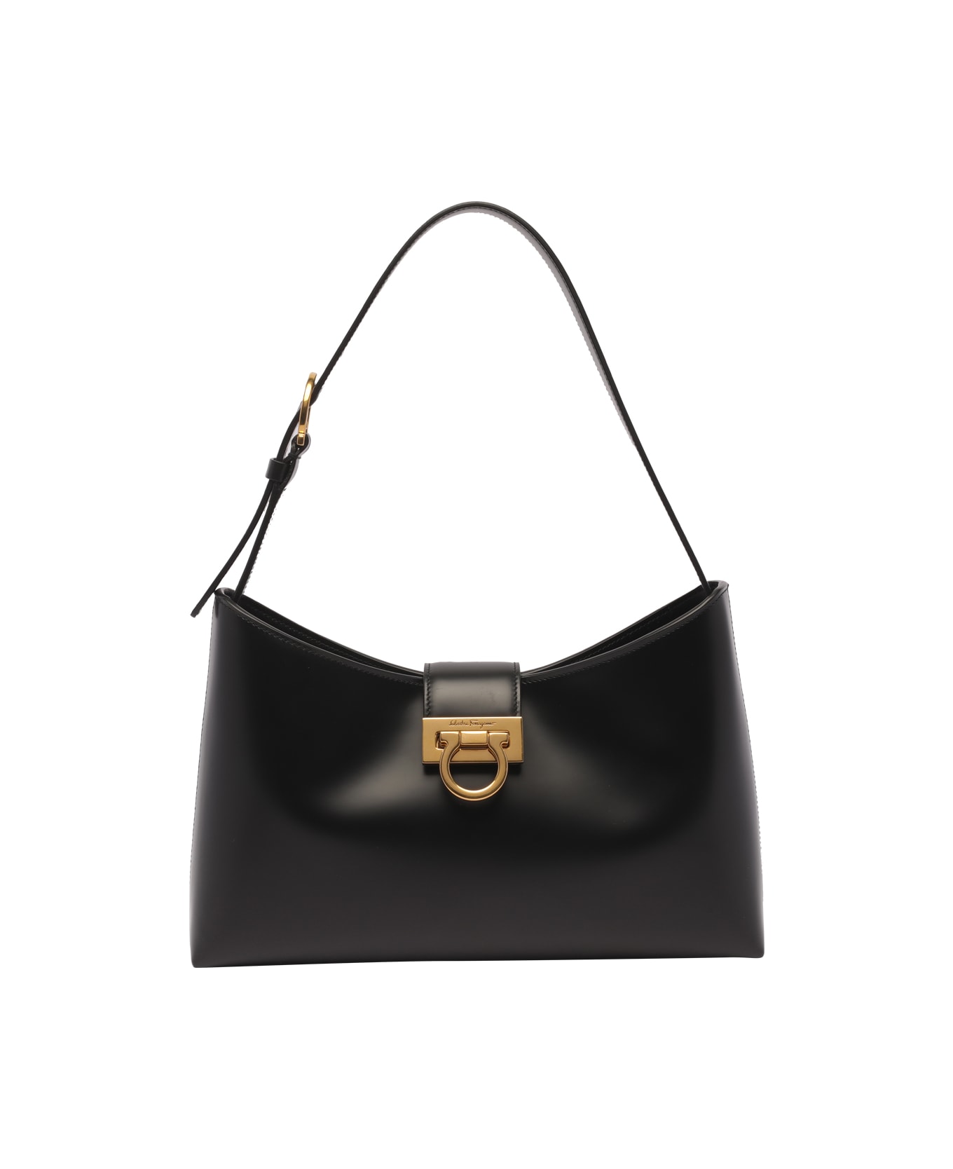 Salvatore Ferragamo black trifolio shoulder bag, turn lock closure, two compartments, zip central pocket, one inner open pocket, adjustable strap, golden logo on front chiusura Composition: 100% Calf Leather