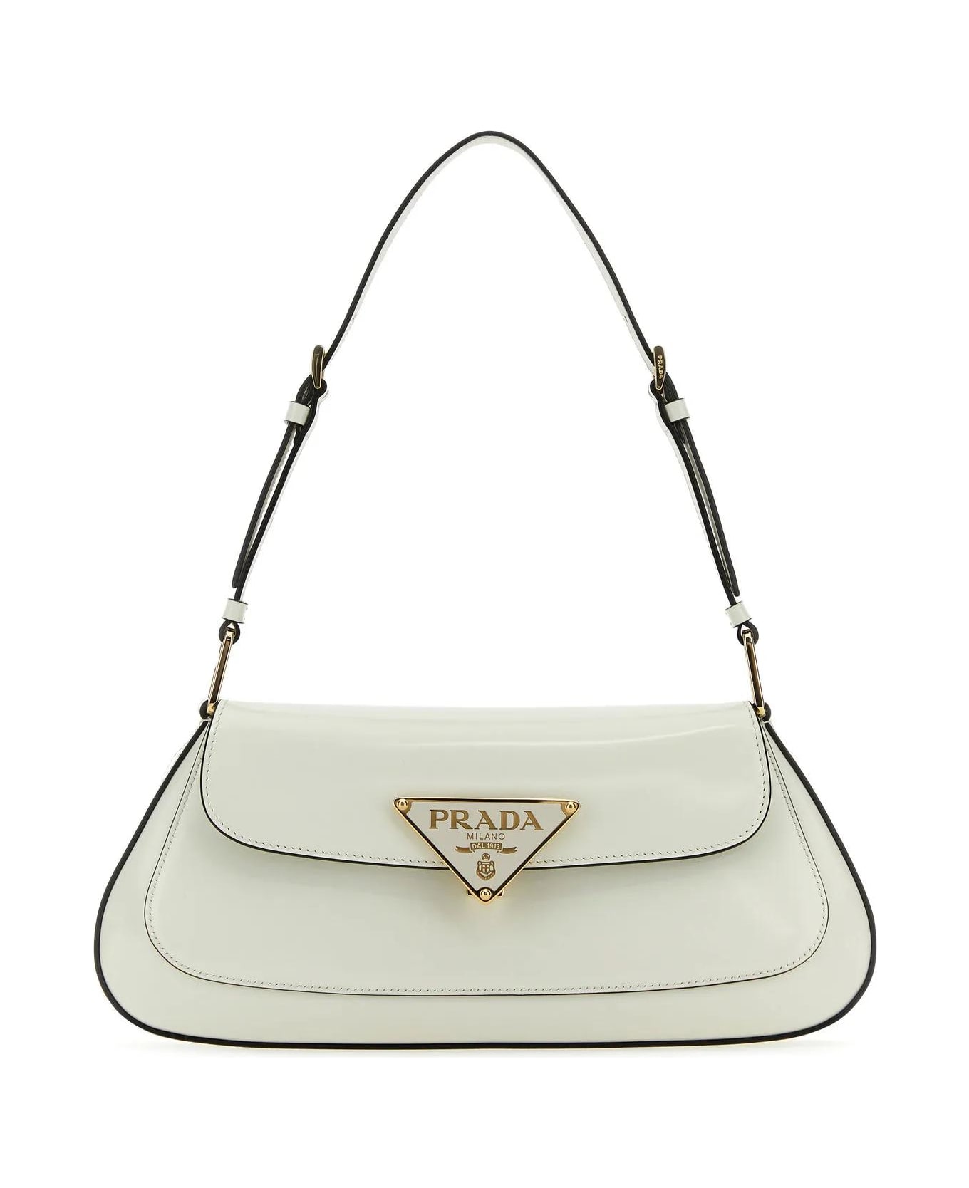 Shoulder bag realized in polished-finish smooth leather enriched by metal iconic logoed triangle at the front. - Adjustable tonal leather flat handle - Press-stud closure - A slit pocket at the back - Lined interior with a patch pocket Composition: Exterior: 100% Leather Lining: 100% Leather Finishing: Golden metal
