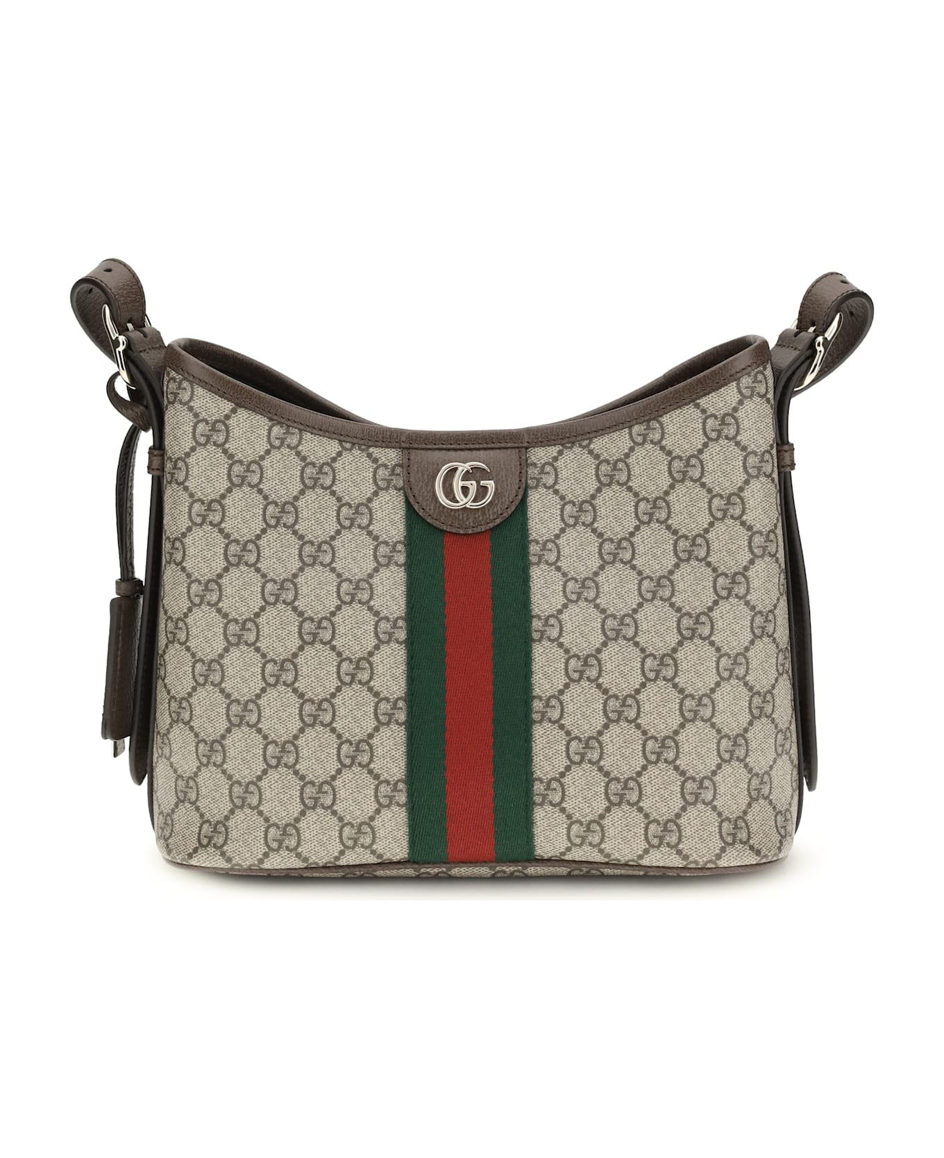 The small ophidia shoulder bag by gucci, crafted from gg monogrammed coated fabric, combines elegance and iconic style. enriched with light gold-tone hardware, the double g logo, and web motif detailing, it features an adjustable leather shoulder strap and hidden magnetic closure, making it versatile and refined for any occasion.