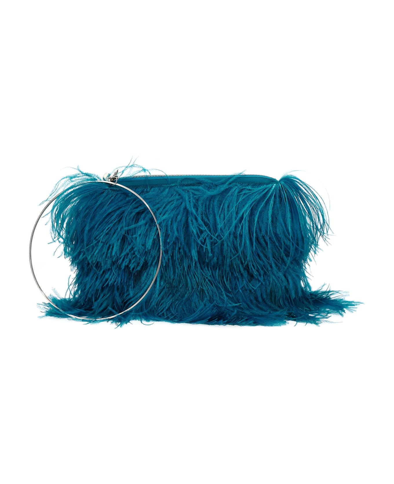 Ava' fabric handbag with all-over destroy feather appliqué, zip closure, and a ring handle of silver metal.