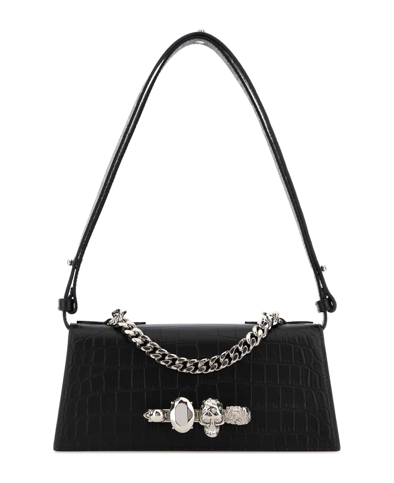 Black Leather Mini Jewelled Shoulder Bag from Alexander McQueen