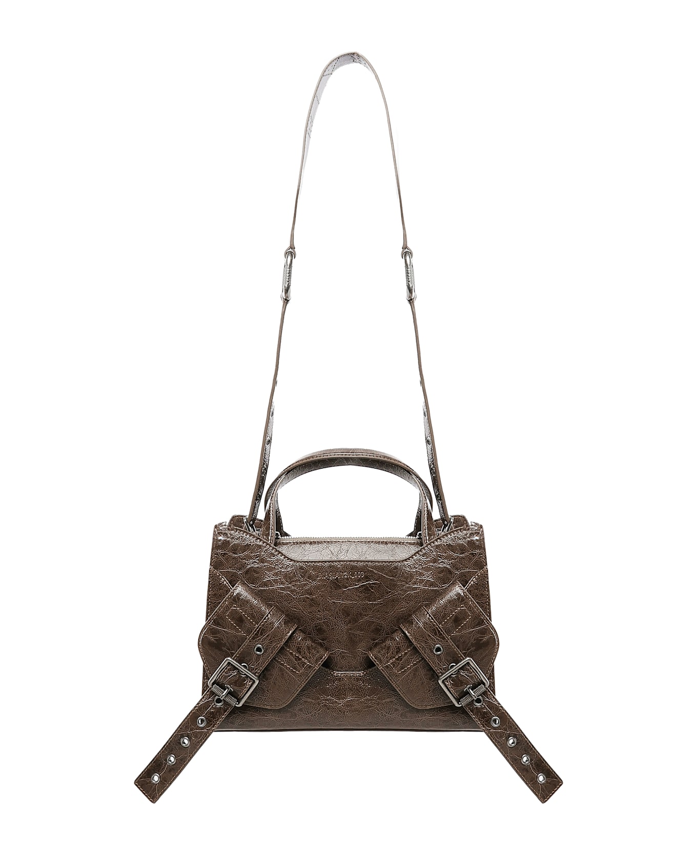 -Oversized angled front pockets -Handles for hand carrying -Adjustable shoulder strap for carrying over the shoulder -Decorations with zip, eyelets and vintage elements -Dimensions: 19x25x28 cm -Made in Italy -Colour: Grey, Silver