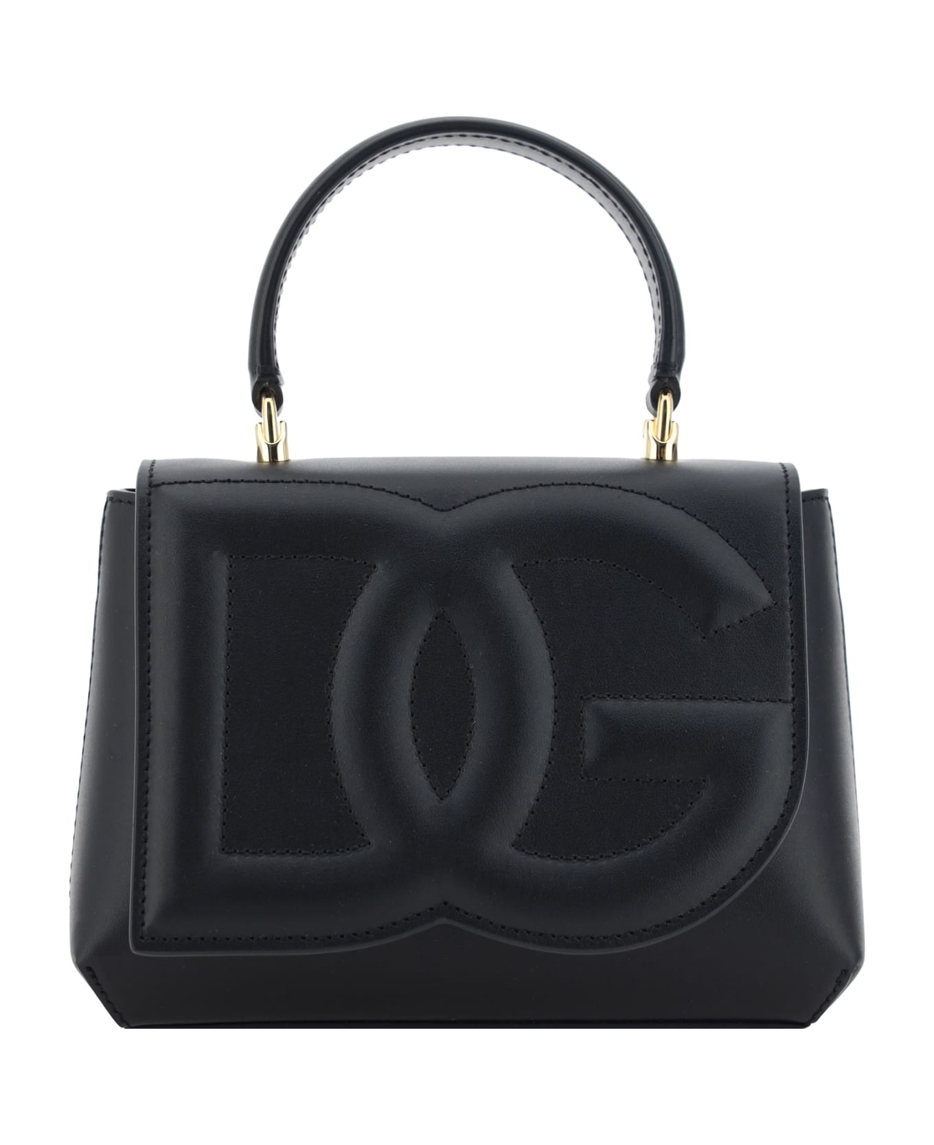Calfskin dg log handbag by dolce&gabbana, removable and adjustable flat shoulder strap, round stiff top handle, iconic embossed d&g logo on front, front closure by magnetic flap, interior welt pocket with zipper for closure, slit pocket on back. Composition: 100% % Calf Leather Bos Taurus